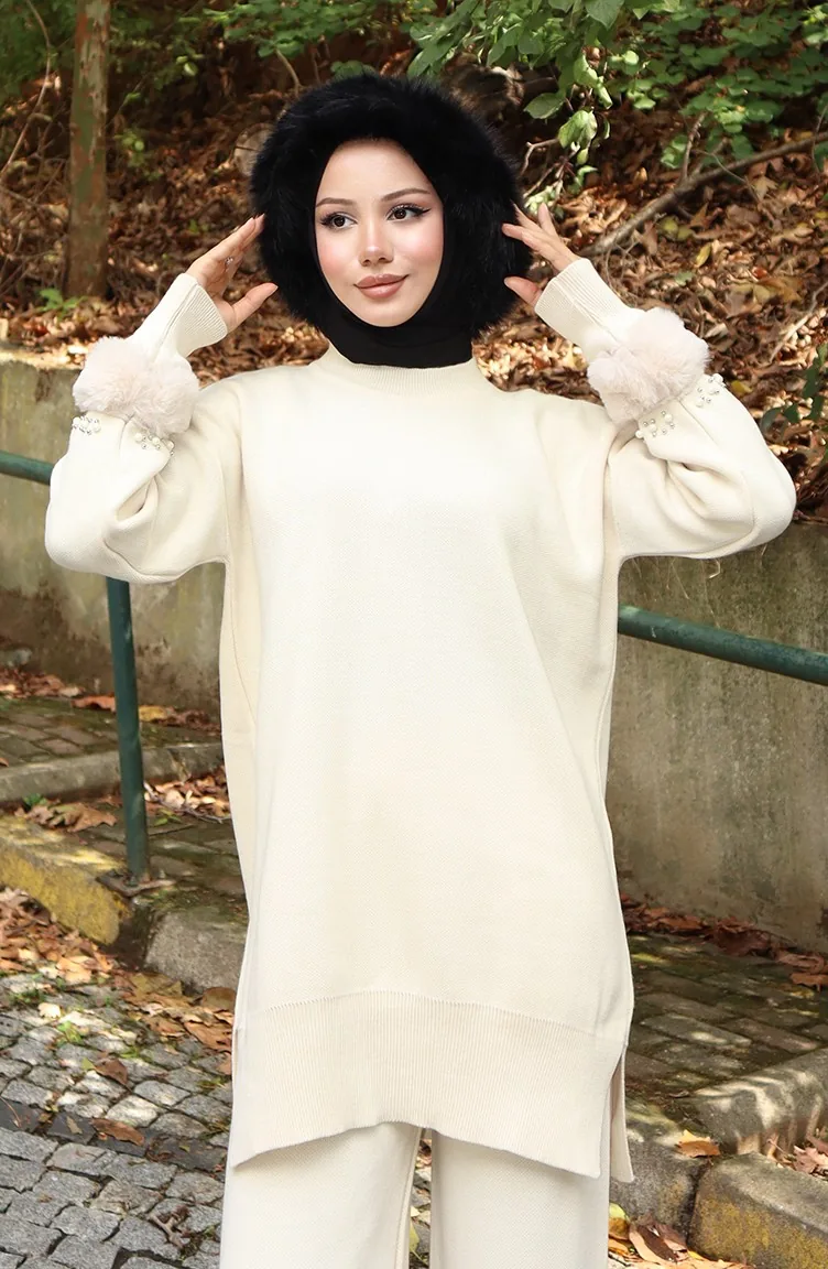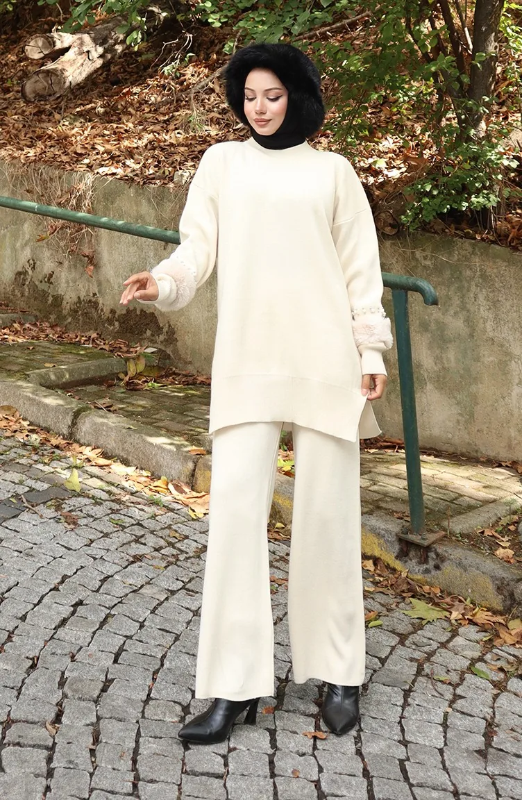 Strickmode Raglanärmel Tunika Hose Zweiteiler 1054-01 Beige 1054-01
