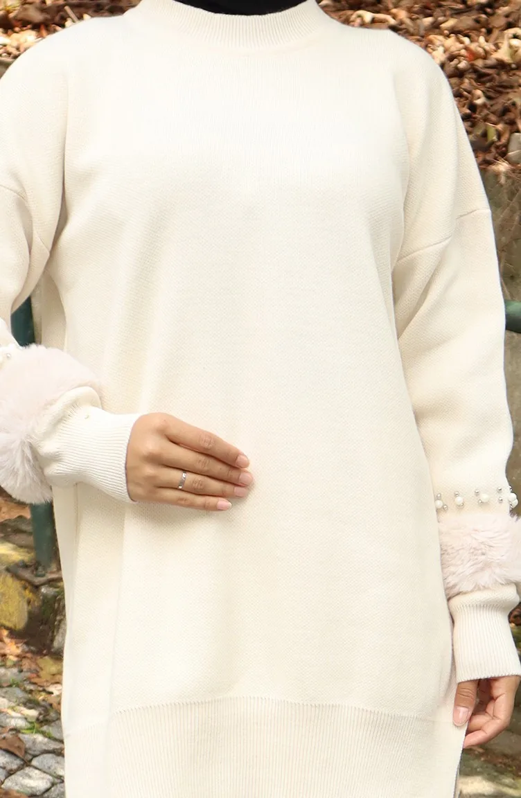 Es ist Beige Farbe. Es ist mit Acrylstoff hergestellt. Es ist eine klare Sicht. Wenn die Tunika mit einem anderen Produkt kombiniert wird, erhält man einen schönen Anzug. Reglan Kol. Jede Kleidungsseite ist die bevorzugte Nullkragenform. Dicker Stoff ist mit Winter konzipiert. Der Körpergröße, den die Models trägt, ist optisch visuelle körpergröße.
