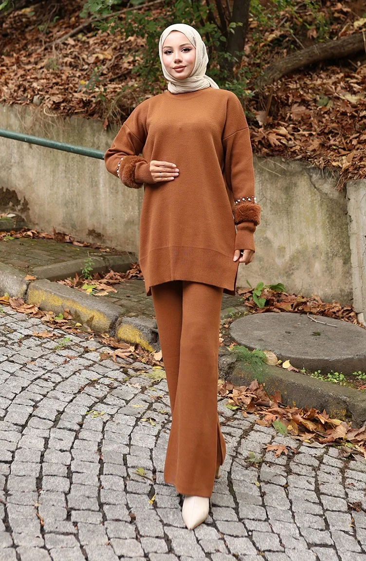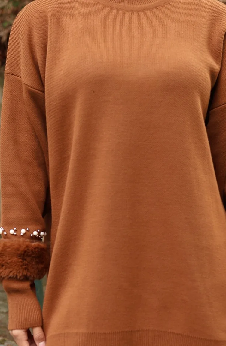 Tabakfarbe wird verwendet. Es ist mit Acrylstoff hergestellt. Es ist eine klare Sicht. Wenn die Tunika mit einem anderen Produkt kombiniert wird, erhält man einen schönen Anzug. Reglan Kol. Jede Kleidungsseite ist die bevorzugte Nullkragenform. Dicker Stoff ist mit Winter konzipiert. Der Körpergröße, den die Models trägt, ist optisch visuelle körpergröße.