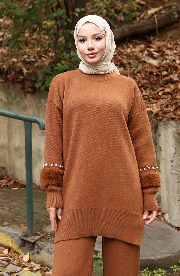 Strickmode Raglanärmel Tunika Hose Zweiteiler 1054-03 Hellbraun 1054-03