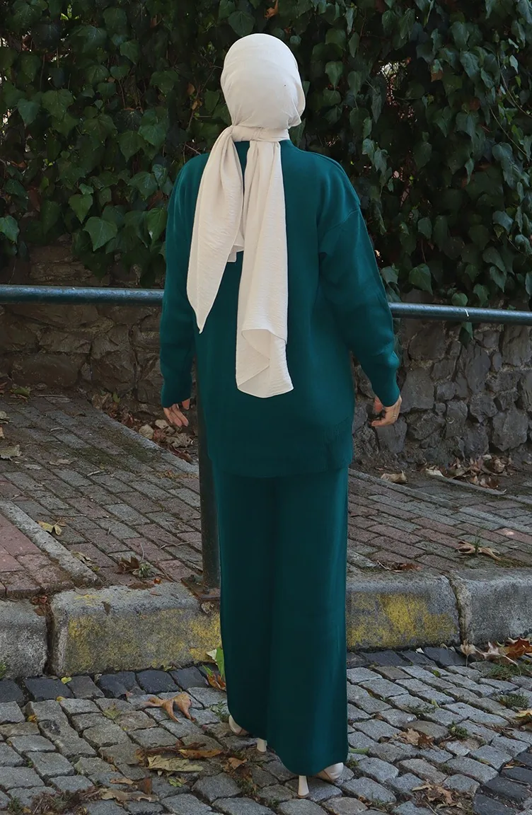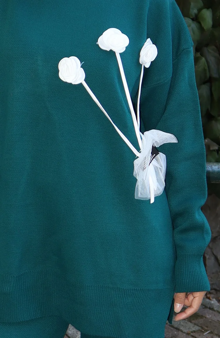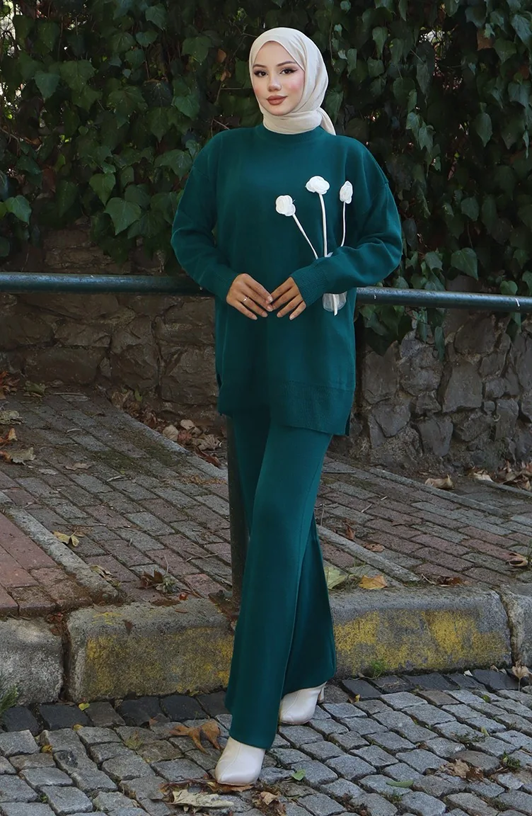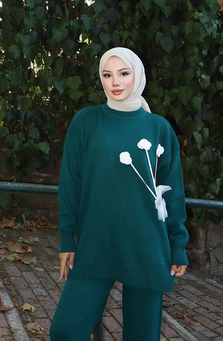 Strickmode Rose Detail Tunika Hose Zweiteiler Set 1030-06 Petrol 1030-06