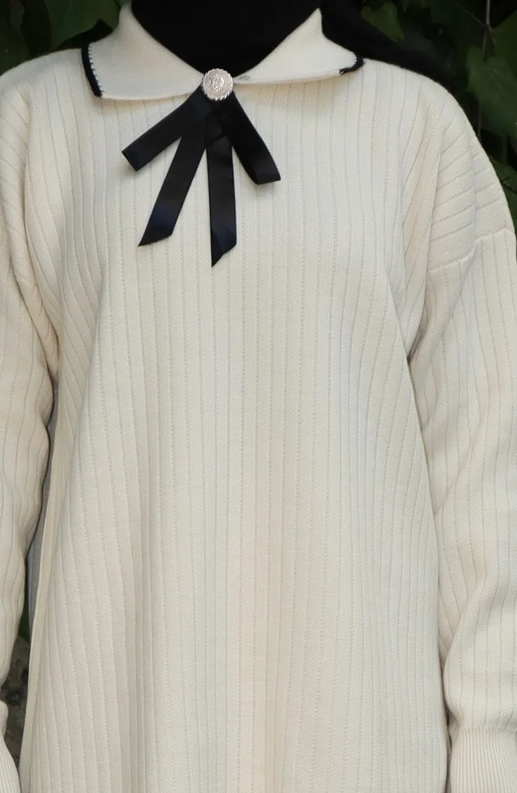 Es ist Beige Farbe. Es ist mit Acrylstoff hergestellt. Es ist eine klare Sicht. Wenn die Tunika mit einem anderen Produkt kombiniert wird, erhält man einen schönen Anzug. Dicker Stoff ist mit Winter konzipiert. Der Körpergröße, den die Models trägt, ist optisch visuelle körpergröße.