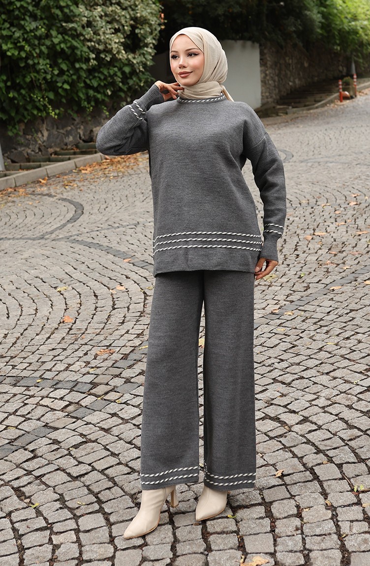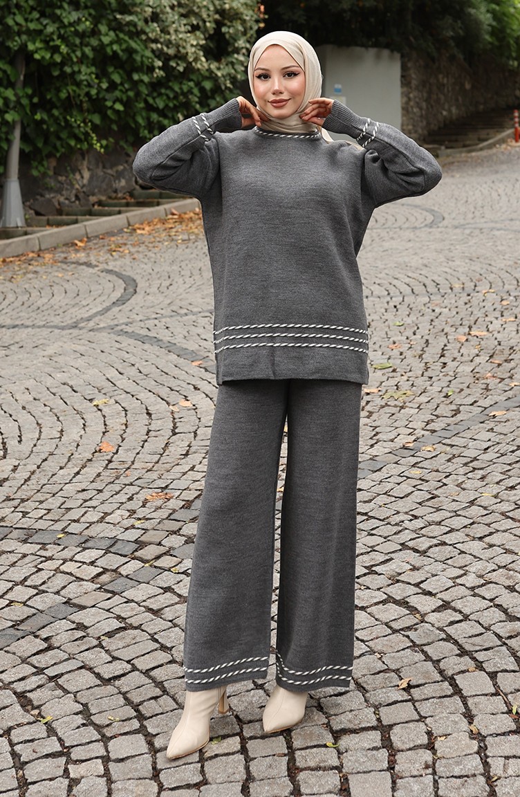 Strickpullover Und Hose Mit Schrägem Muster Zweiteilig 0017-02 Anthrazit 0017-02