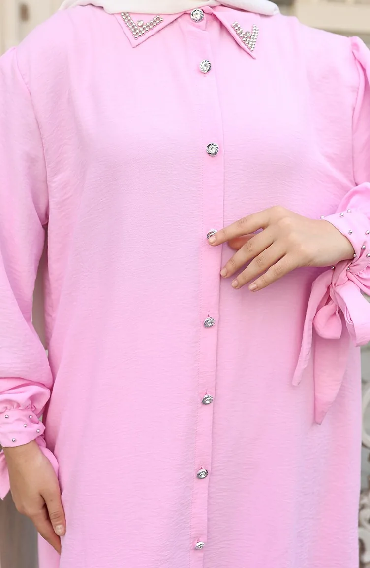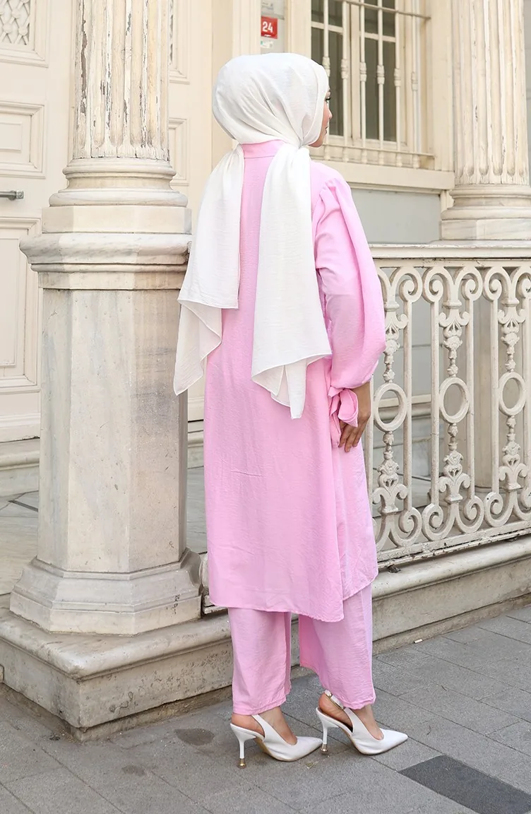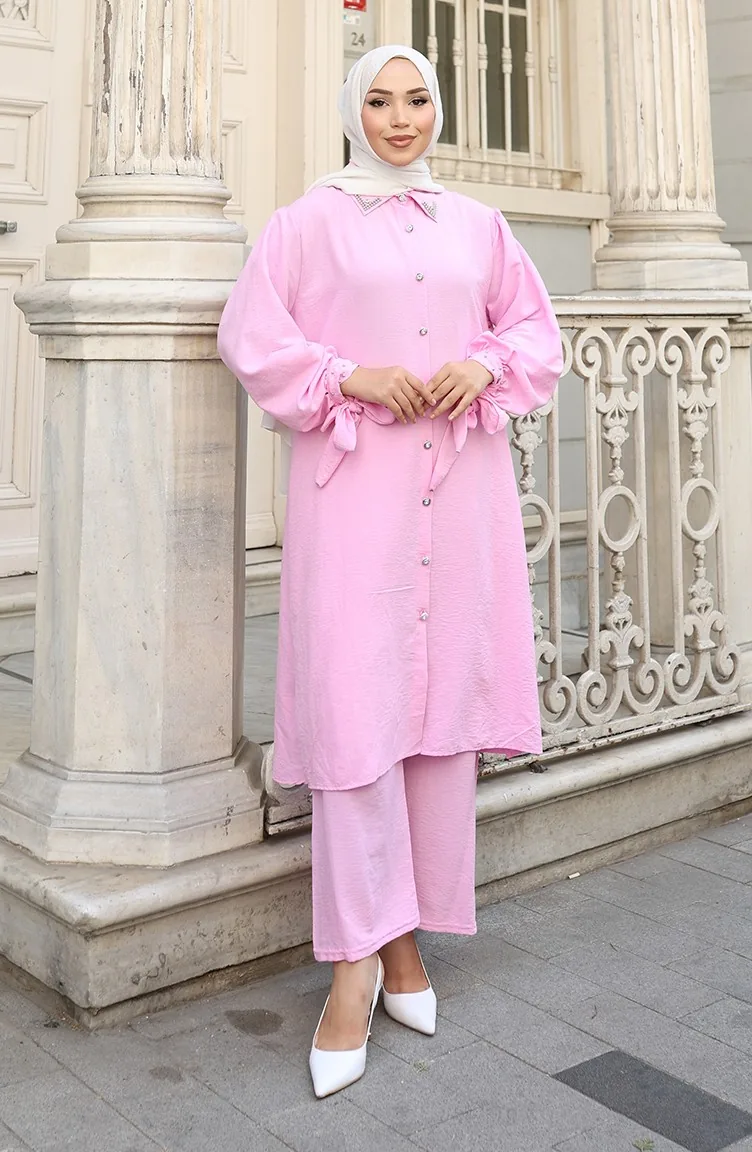 Aerobin Stoff Geknöpfte Tunika Hose Zweiteiliger Anzug 2147-03 Rosa 2147-03