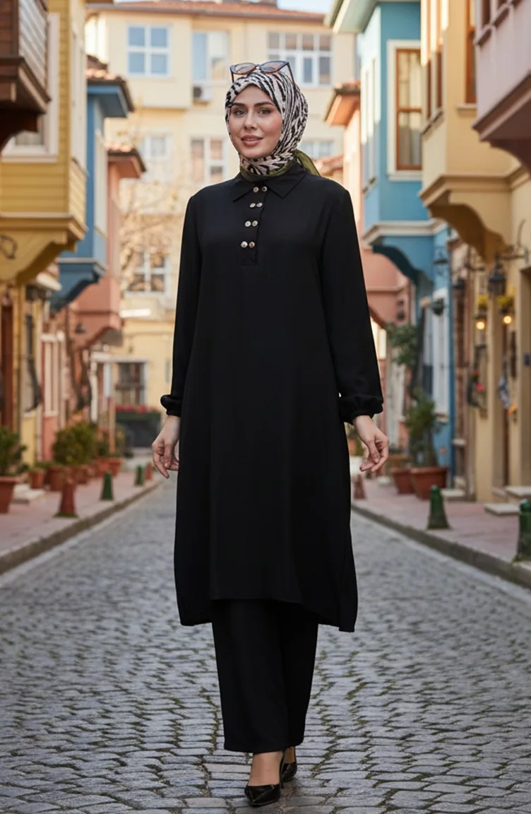 Hemdkragen Tunika Hose Zweiteiler 0123-06 Schwarz 0123-06