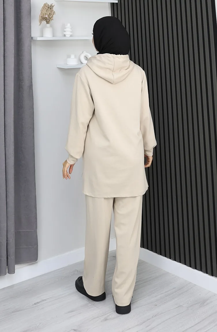 Oysho Stoff-Hijab-Anzug Mit Kettenverzierung Zweiteilig Beige 0212-04 0212-04