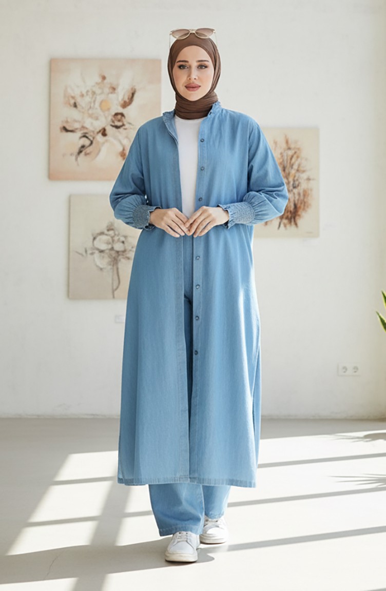 Blaufarbe wird verwendet. Tencel Stofftyp. Es ist eine klare Sicht. Es wurde mit Knopf verwendet, um die Verwendung zu vereinfachen. Es ist für vier Jahreszeiten geeignet. Große Größen Option ist verfügbar.