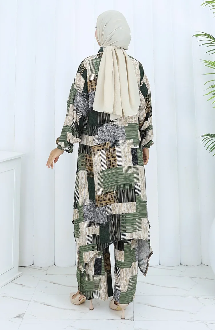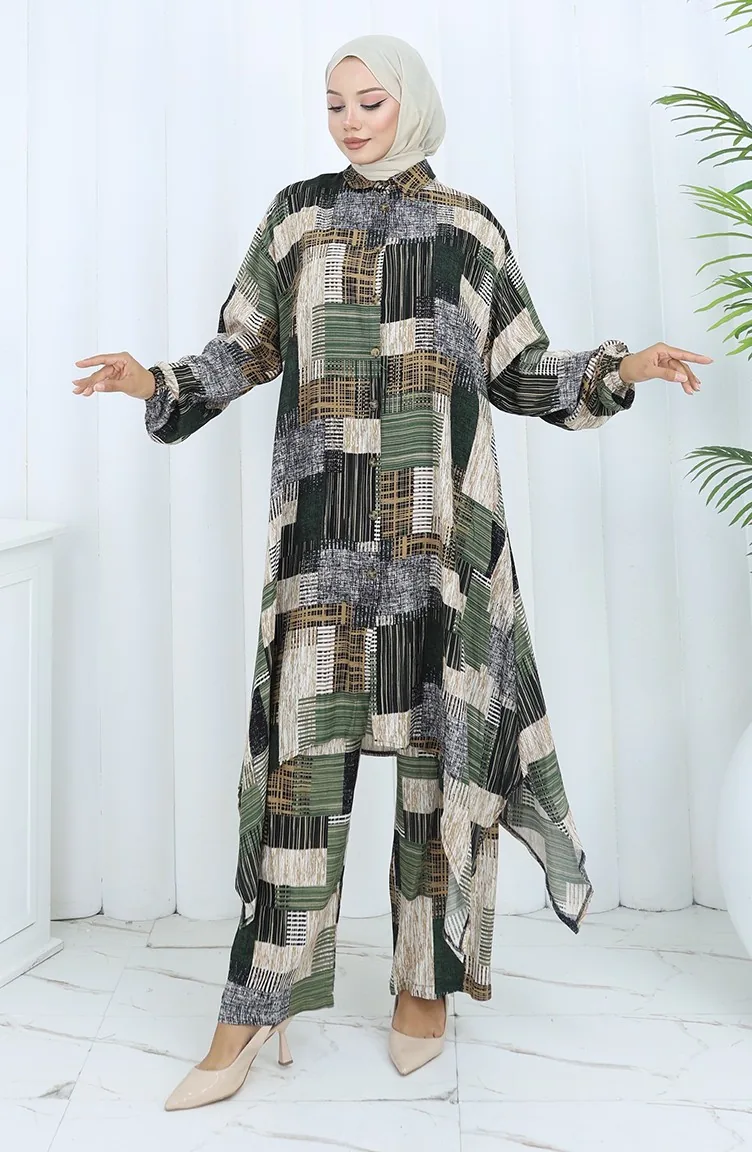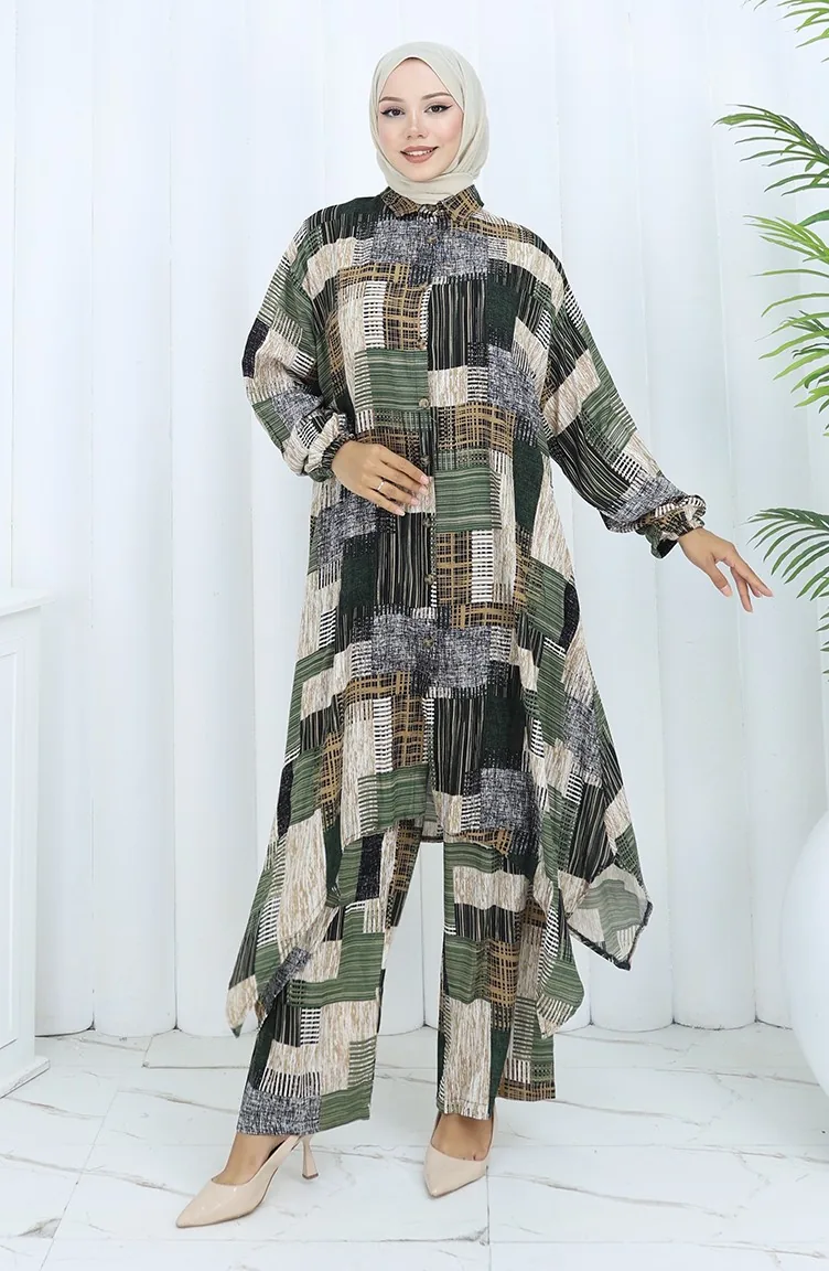 Viskose Stoff Tunika Hose Doppelanzug 2139-01 Khaki Nerz 2139-01