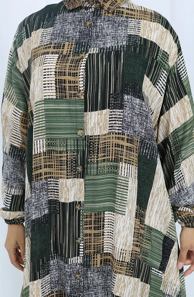 Es hat Khaki-Farbe. Viskose ist ein synthetischer Stofftyp und ist bequem und nützlich zu verwenden. Entworfen mit gemustertem Stoff. Es wurde mit Knopf verwendet, um die Verwendung zu vereinfachen. Es besteht aus Gummi Ärmeln. Hemdkragen ist ein Muss für viele Kombinationen. Es ist für vier Jahreszeiten geeignet. Große Größen Option ist verfügbar.