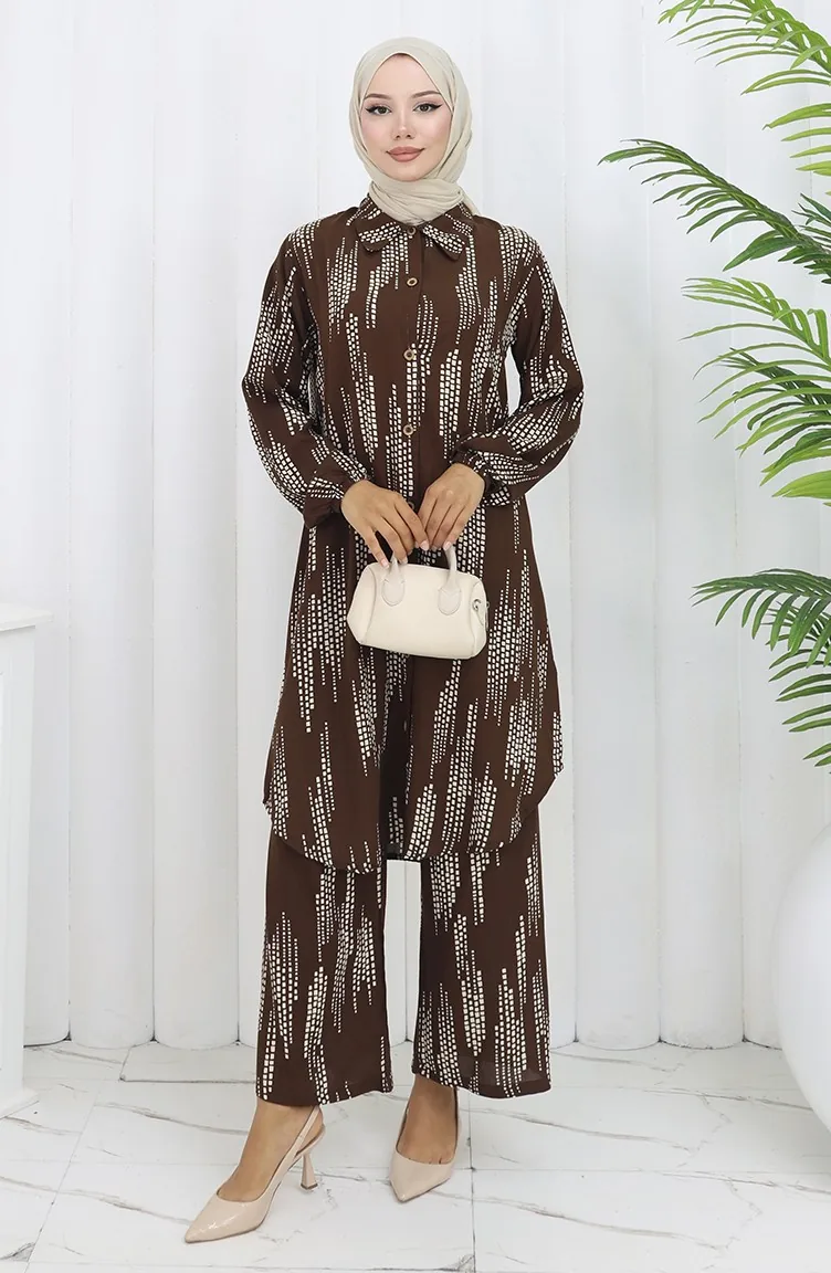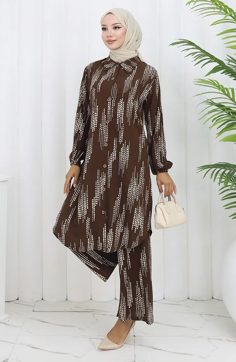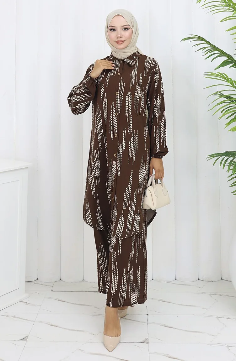 Viskose Stoff Tunika Hose Zweiteiler 0132-01 Braun 0132-01