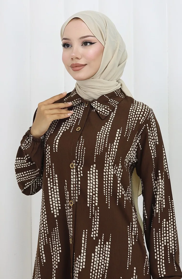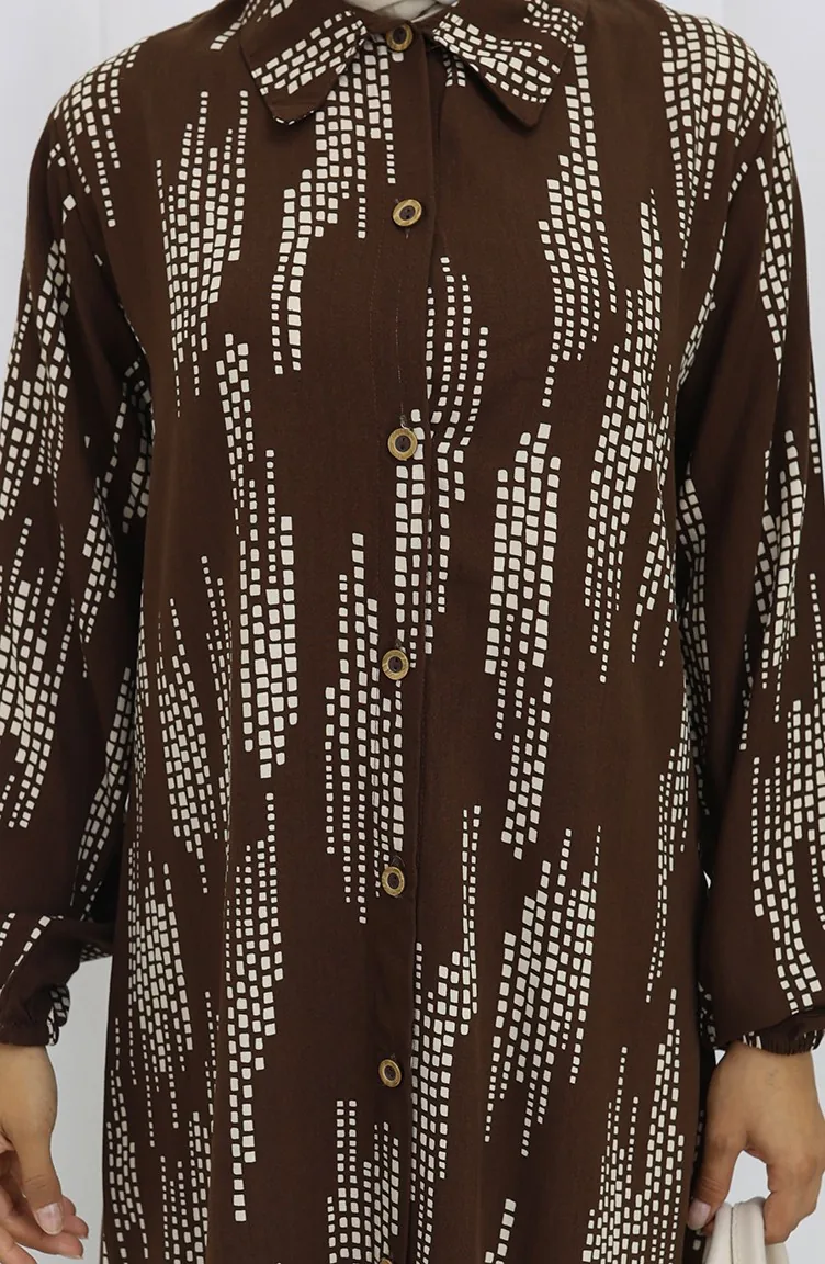 Braunfarbe wird verwendet. Viskose ist ein synthetischer Stofftyp und ist bequem und nützlich zu verwenden. Es ist eine klare Sicht. Es wurde mit Knopf verwendet, um die Verwendung zu vereinfachen. Es besteht aus Gummi Ärmeln. Es ist für vier Jahreszeiten geeignet. Große Größen Option ist verfügbar.
