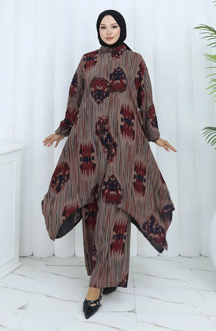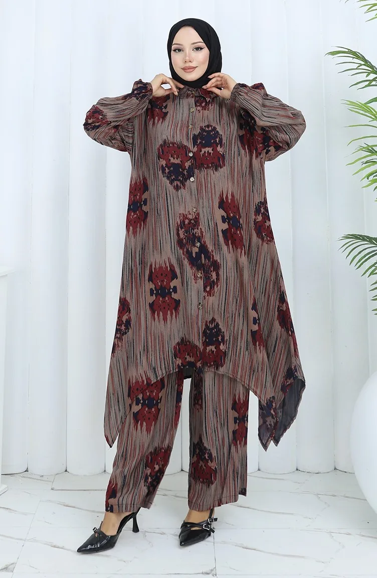Viskose Stoff Tunika Hose Zweiteiler 2143-04 Ziegelrot 2143-04