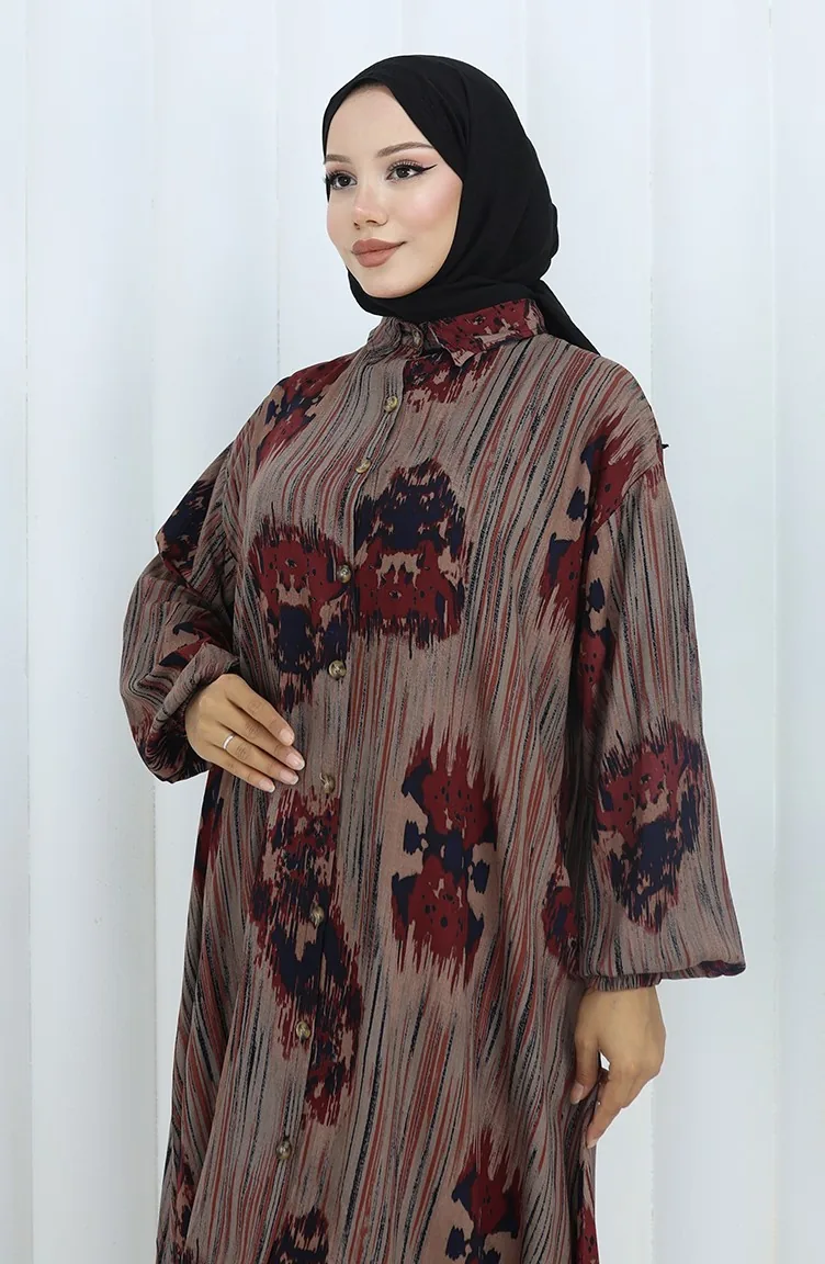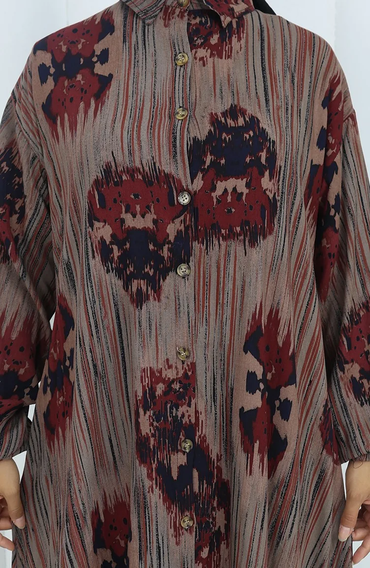 Es hat Ziegelrot farbe. Viskose ist ein synthetischer Stofftyp und ist bequem und nützlich zu verwenden. Entworfen mit gemustertem Stoff. Es wurde mit Knopf verwendet, um die Verwendung zu vereinfachen. Es besteht aus Gummi Ärmeln. Hemdkragen ist ein Muss für viele Kombinationen. Es ist für vier Jahreszeiten geeignet. Große Größen Option ist verfügbar.