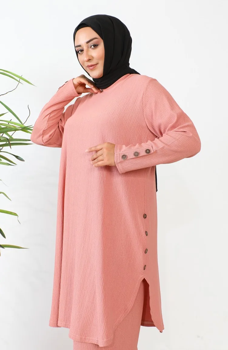 Zweiteiliges Set Aus Tunika Und Hose Mit Strasssteinen In Übergröße Artikelnummer 2658-11 Rosa 2658-11