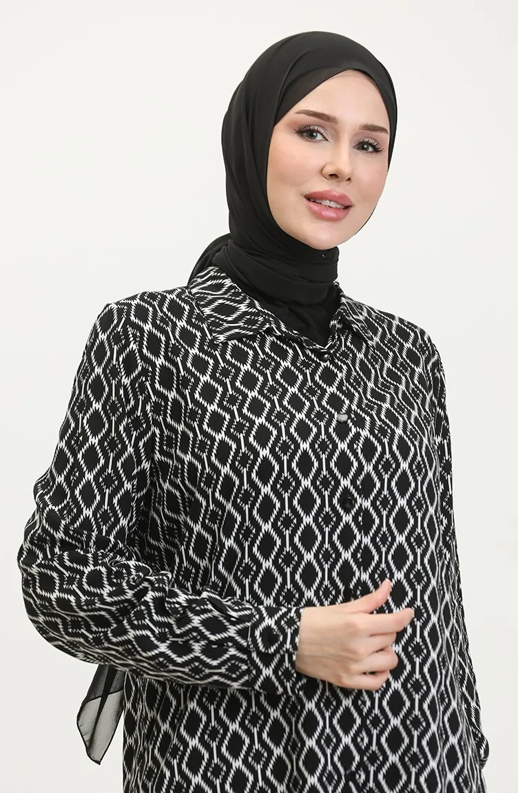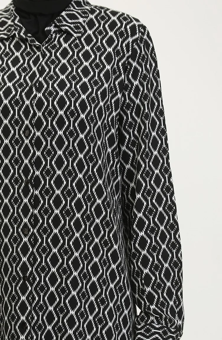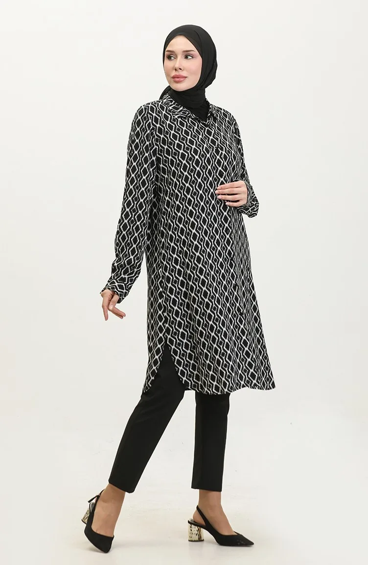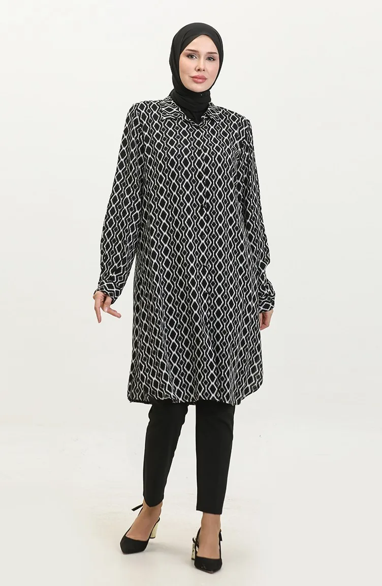 Gemusterte Hemdtunika In Übergröße 2022A-01 Schwarz 2022A-01