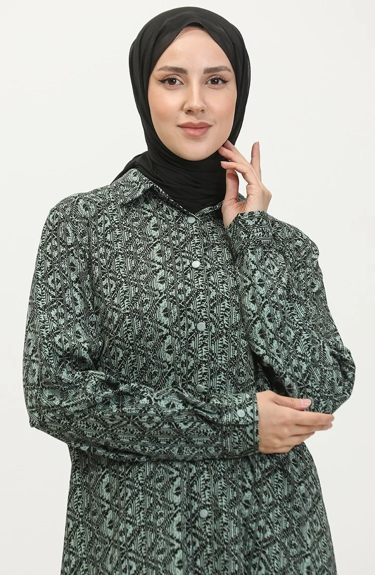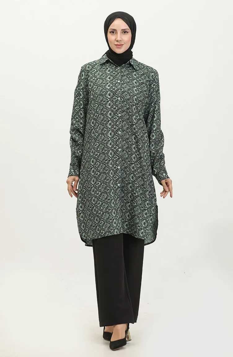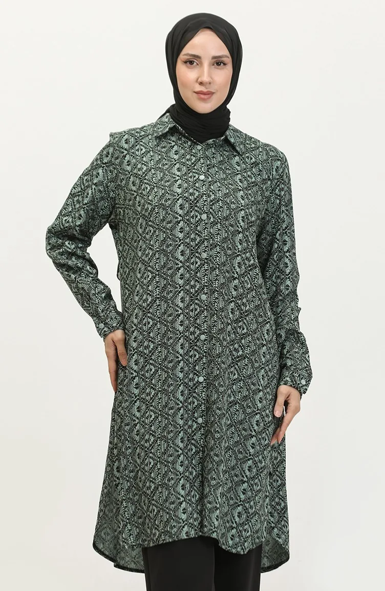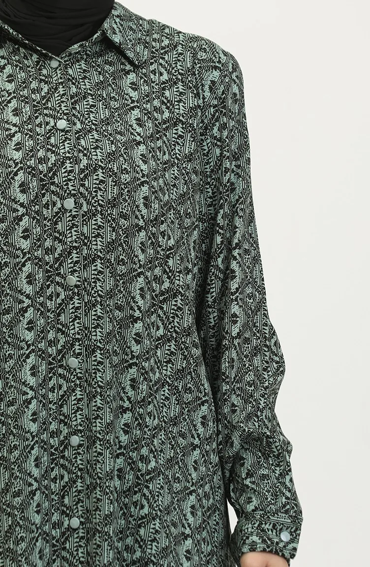 Gemusterte Hemdtunika In Übergröße 2022C-01 Grün 2022C-01