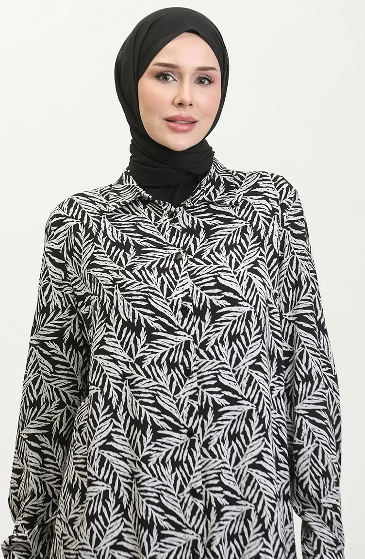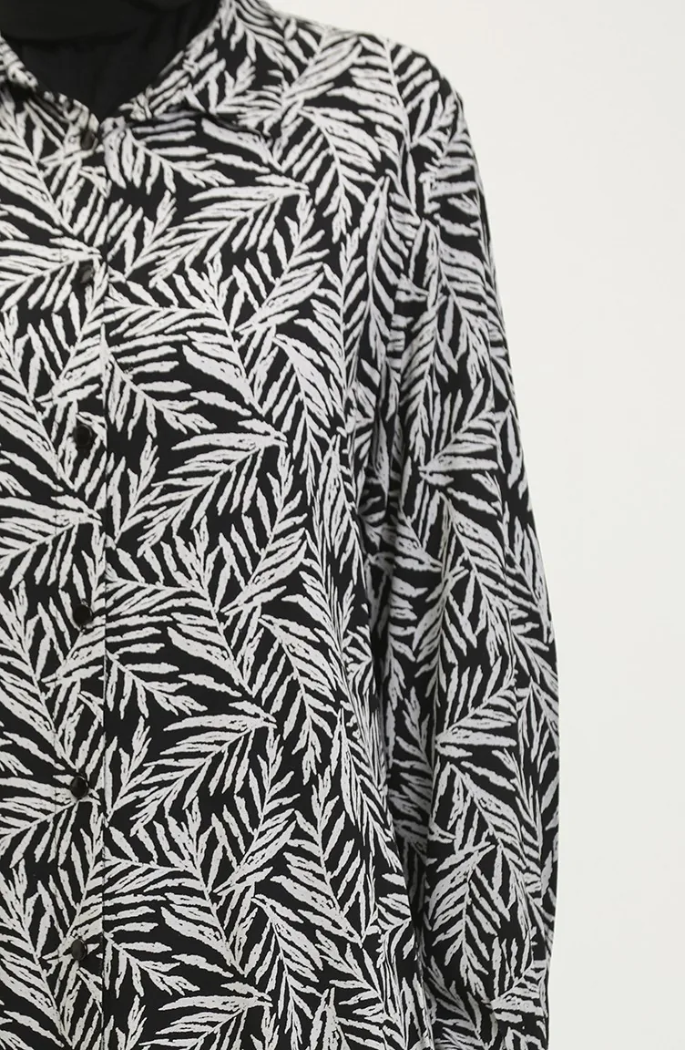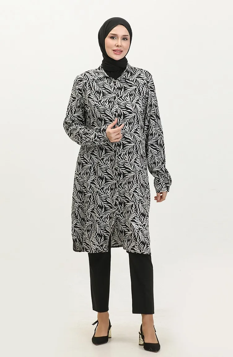 Gemusterte Hemdtunika In Übergröße Modell 2022-01 Schwarz 2022-01
