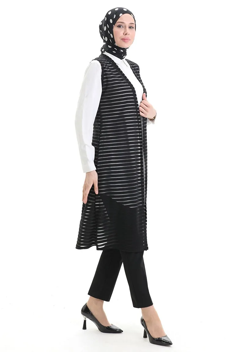 Lange Weste Mit Spitze 8745-01 Schwarz 8745-01