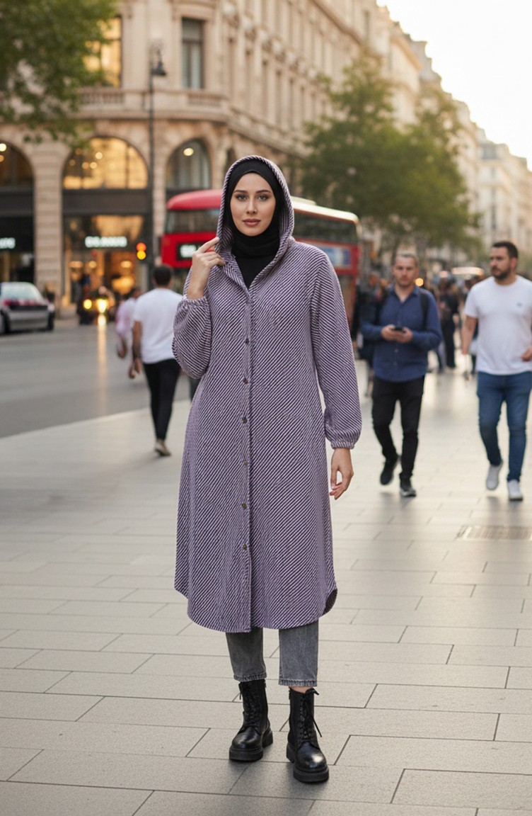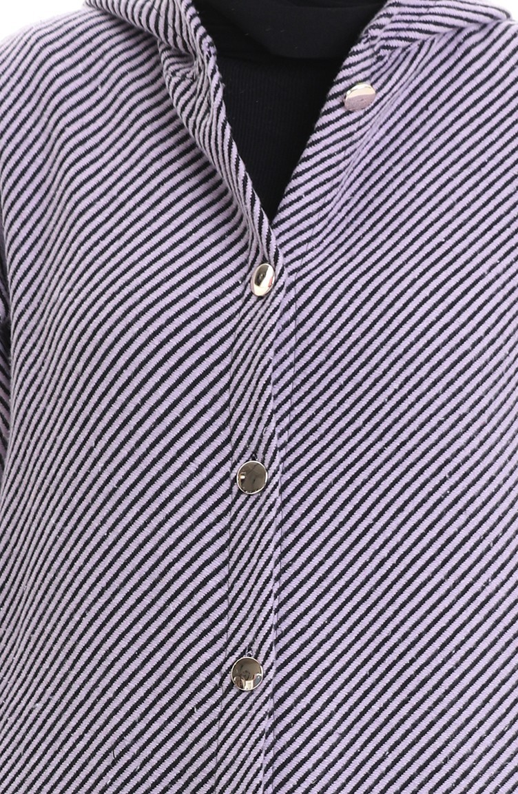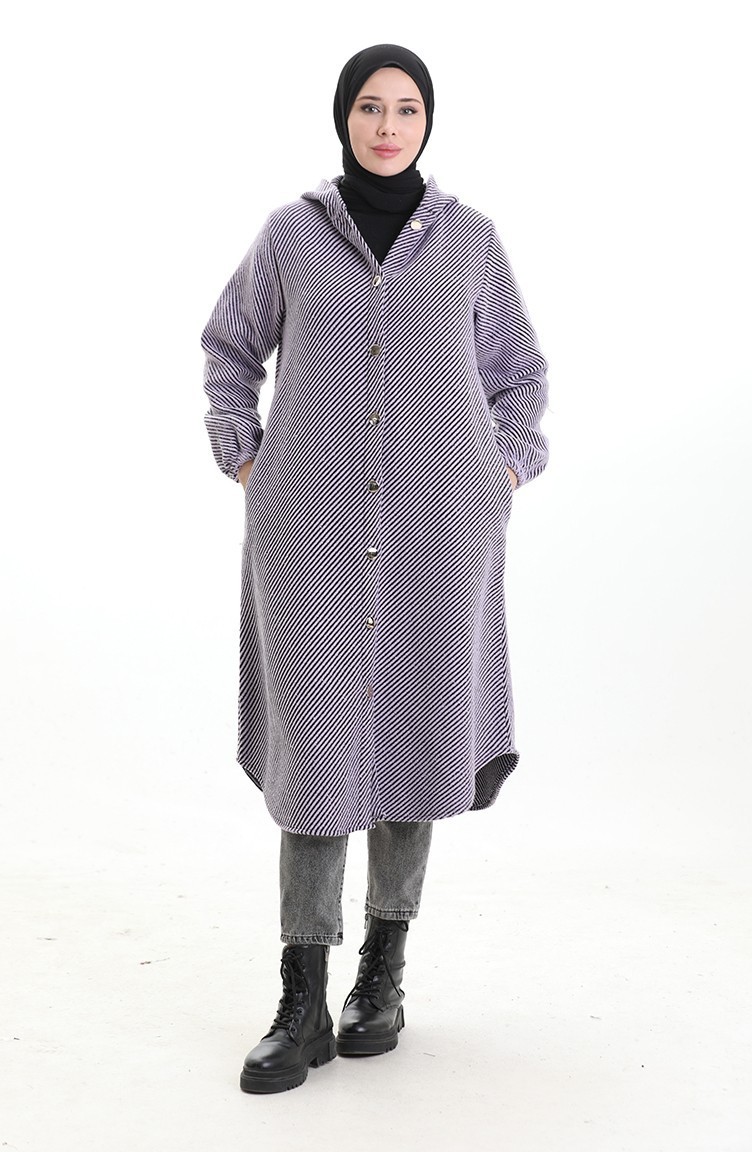 Kaschmir Mantel Mit Kapuze Und Knöpfen 0201-01 Lila 0201-01
