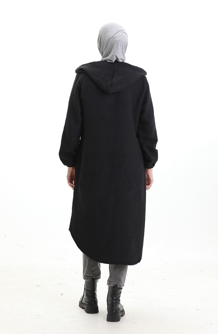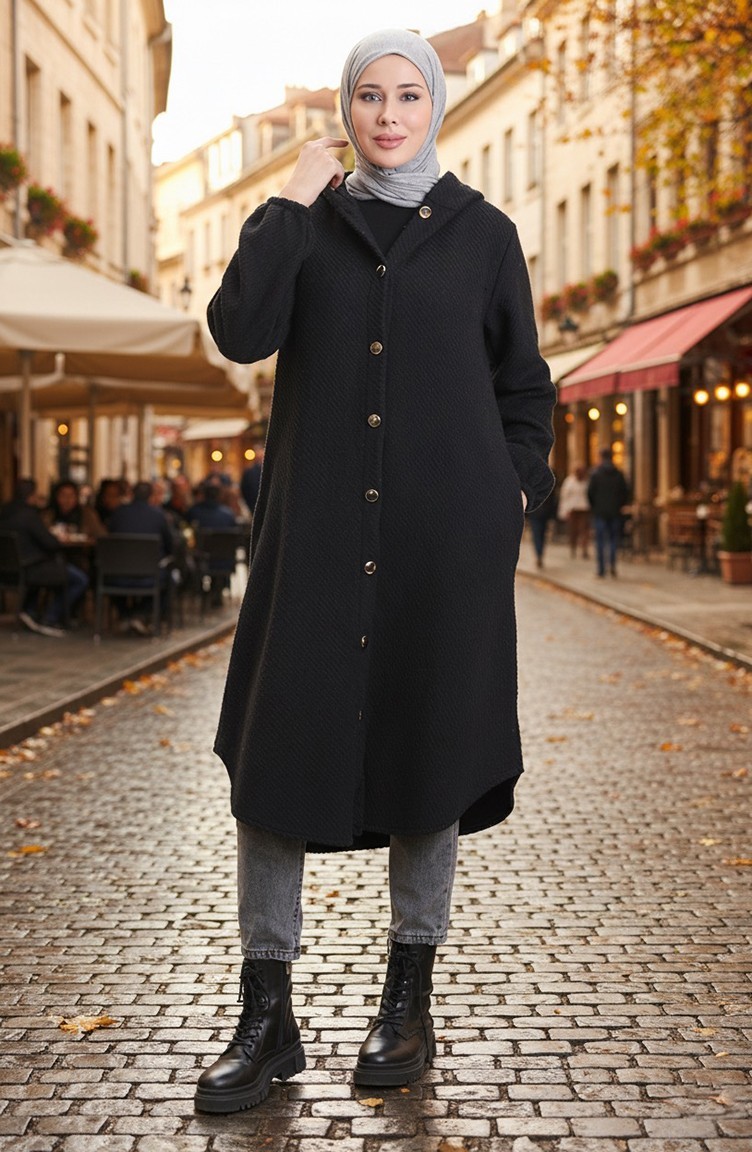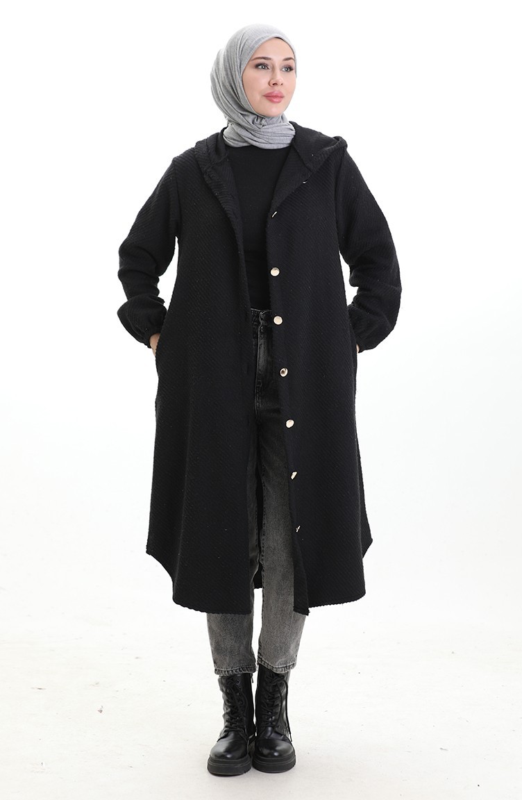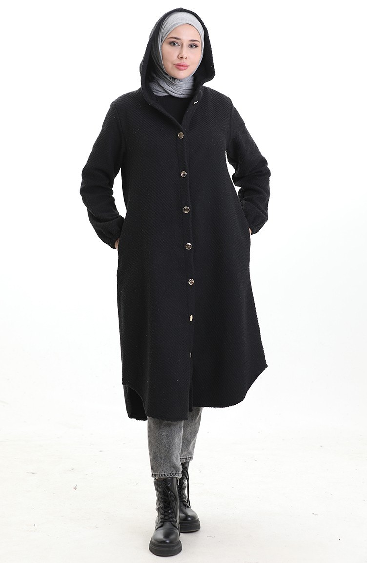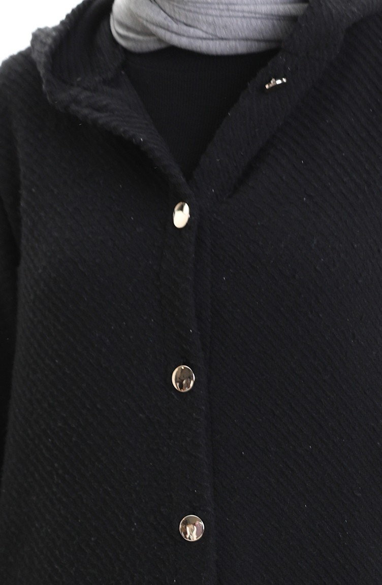 Kaschmir Mantel Mit Kapuze Und Knöpfen 0201-05 Schwarz 0201-05