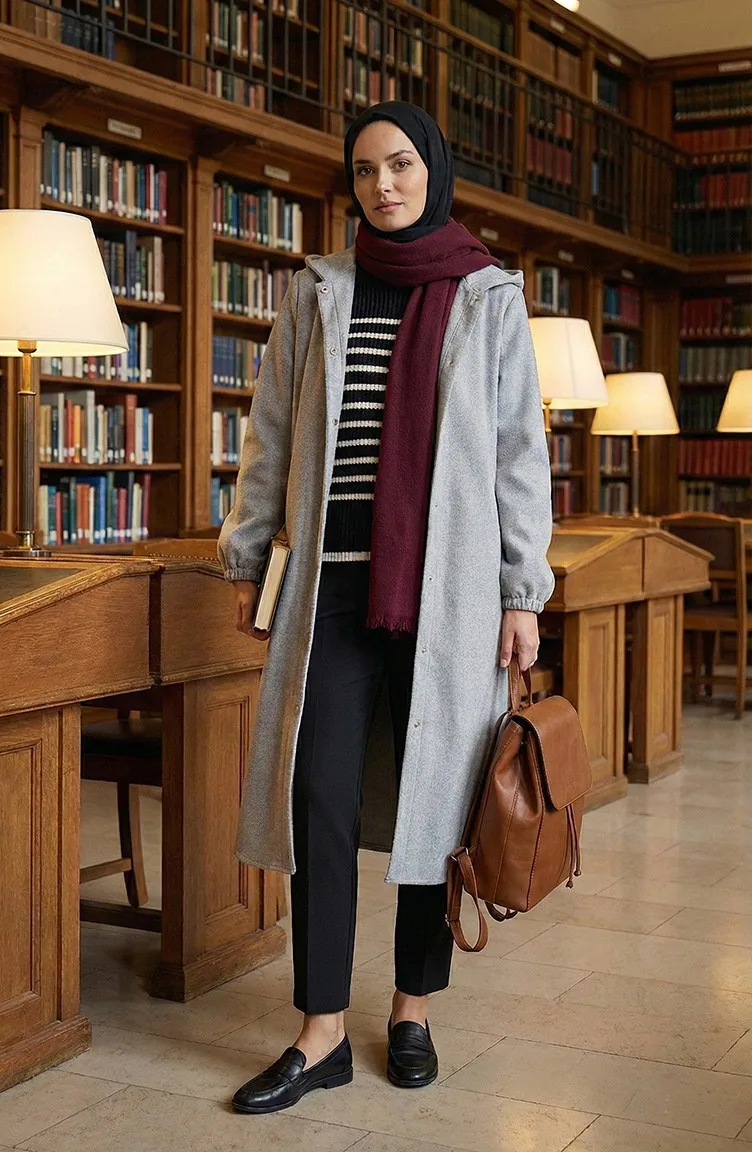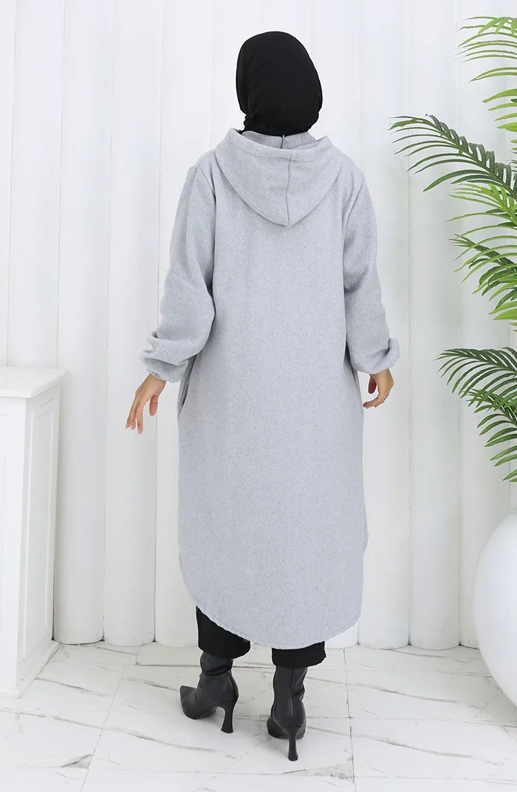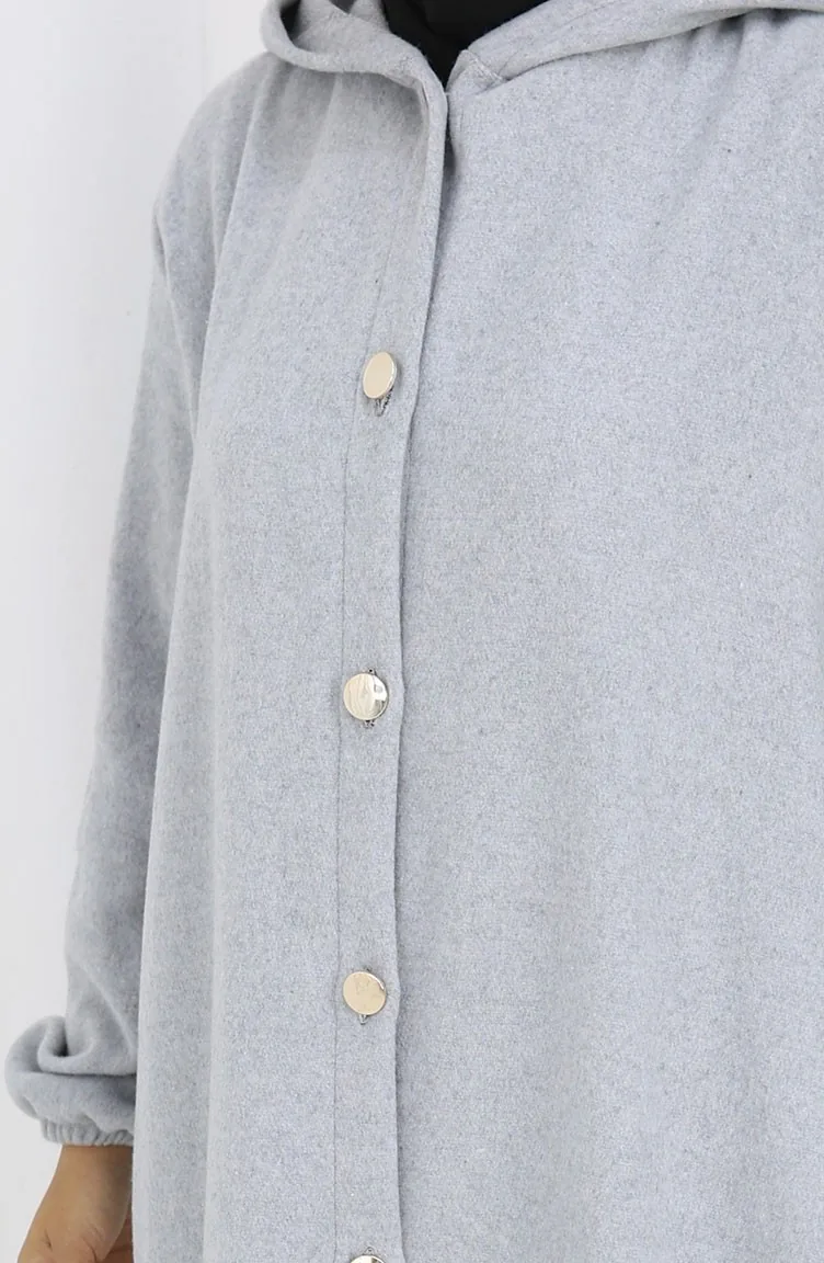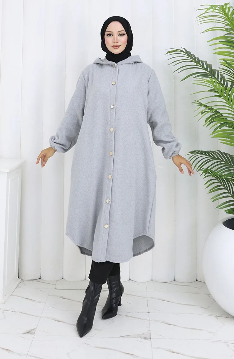 Kaschmirmantel Mit Kapuze Und Knopfleiste 0188-02 Grau 0188-02