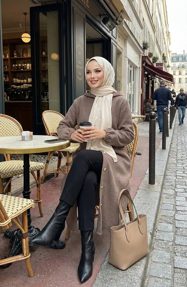 Kaschmirmantel Mit Kapuze Und Knopfleiste Vorne 0188-03 Nerz 0188-03