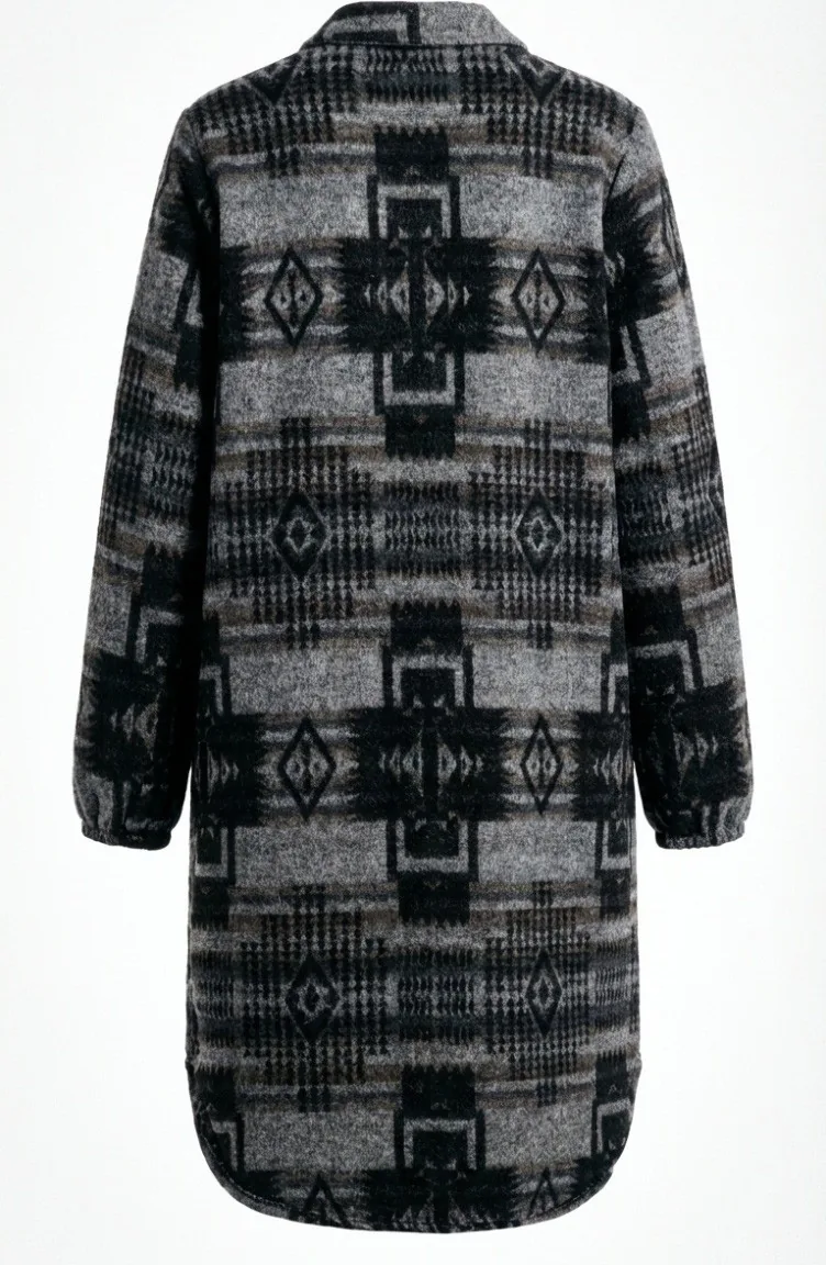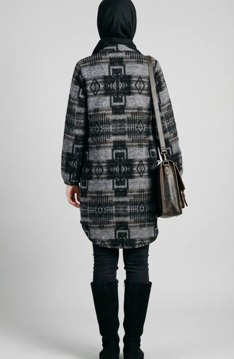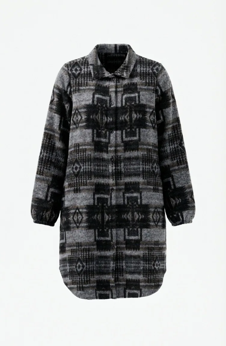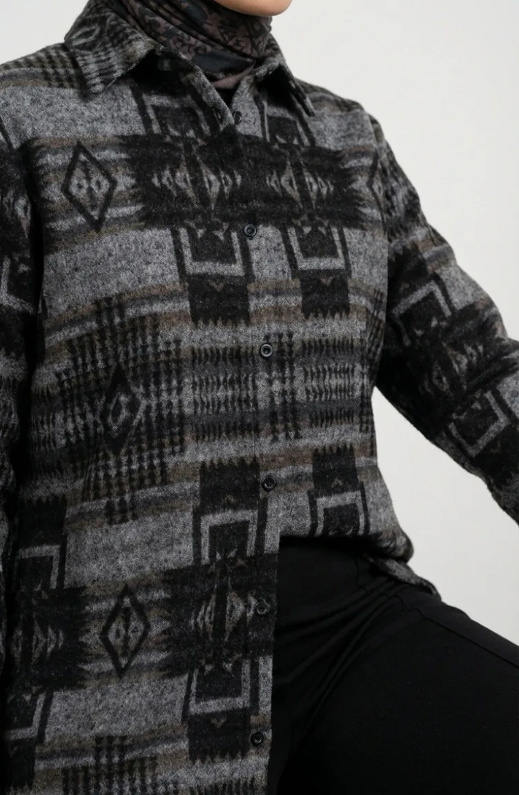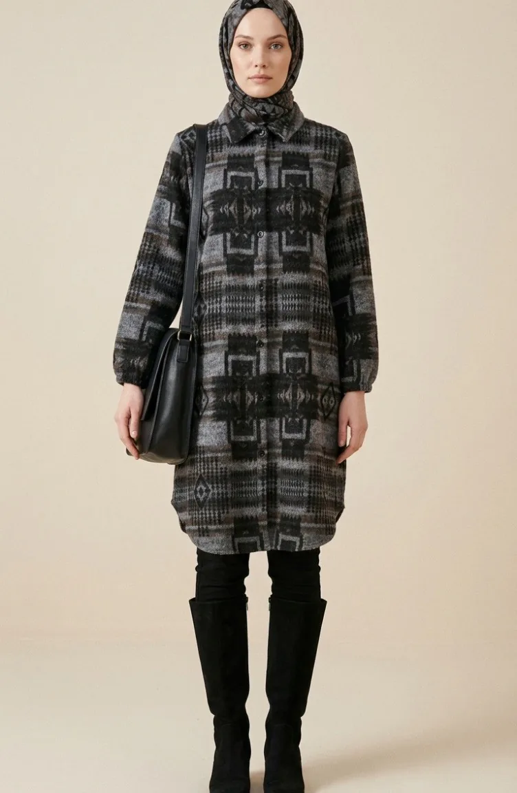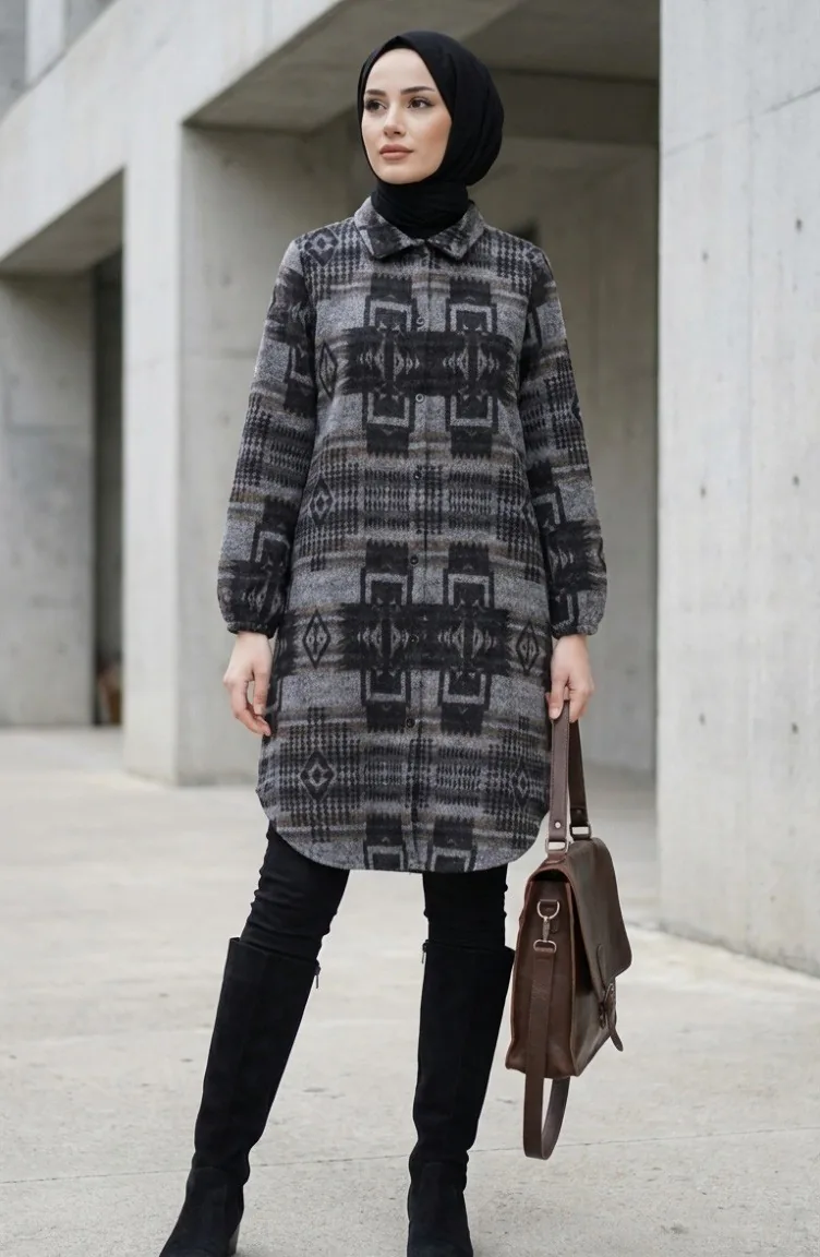 Gemusterte Geknöpfte Holzfäller-Wintertunika 2503-05 Grau Hellbraun 2503-05