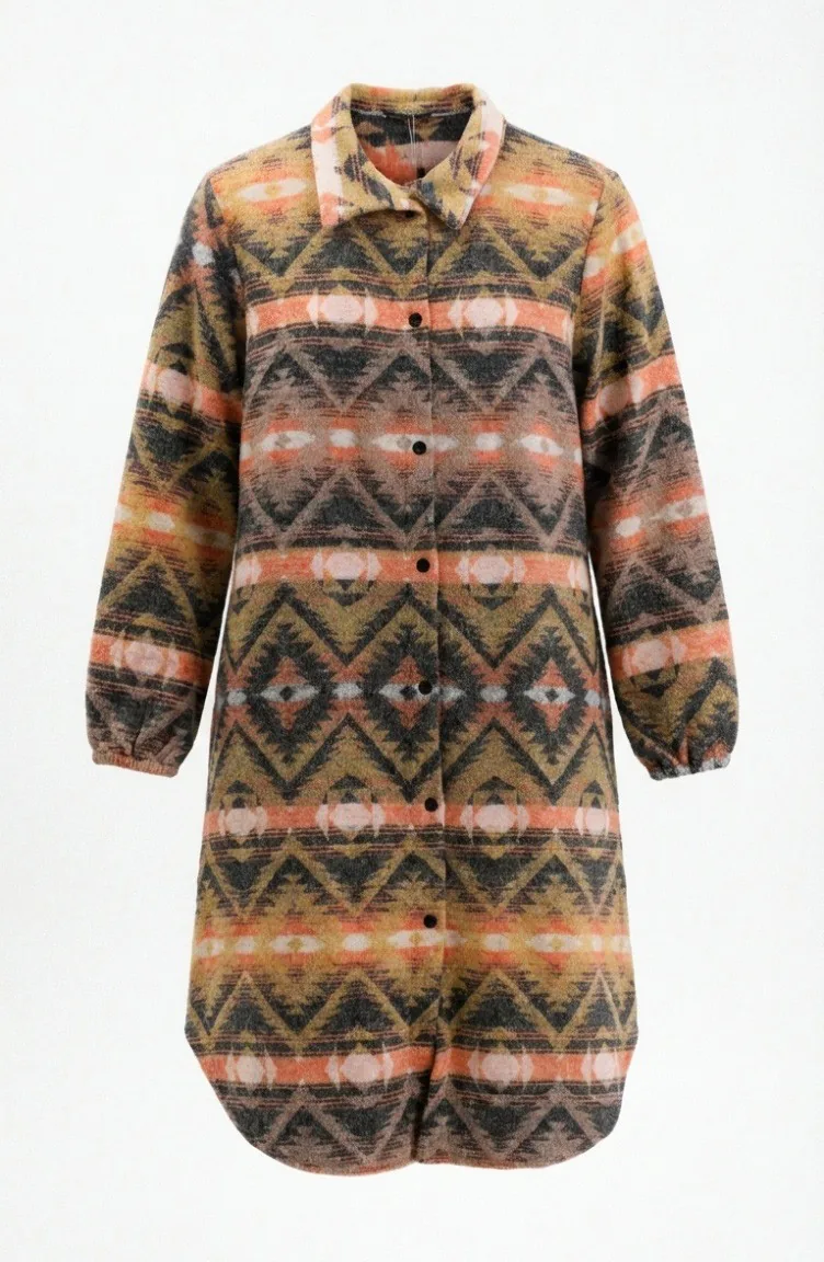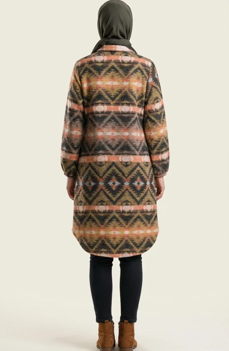 Gemusterte Geknöpfte Wintertunika Im Holzfällerstil 2502-05 Orange Beige 2502-05