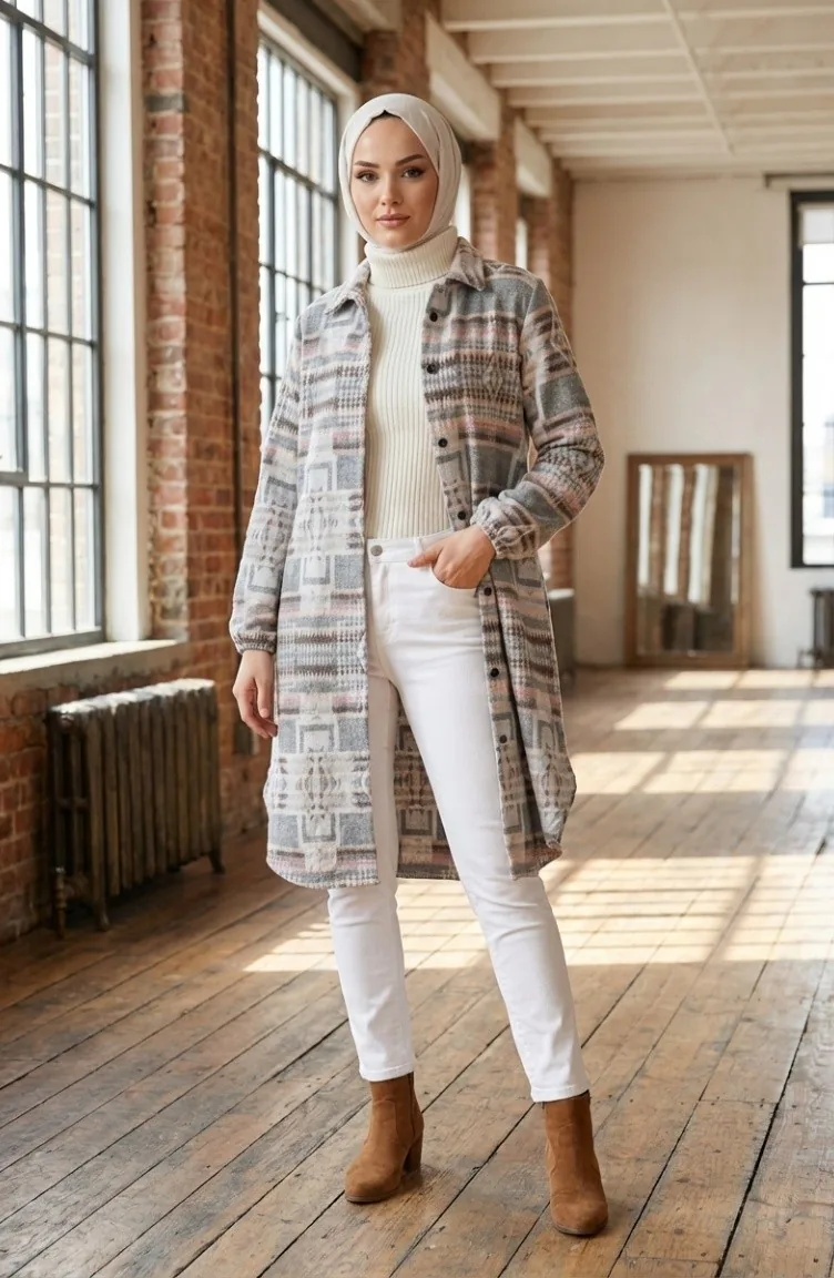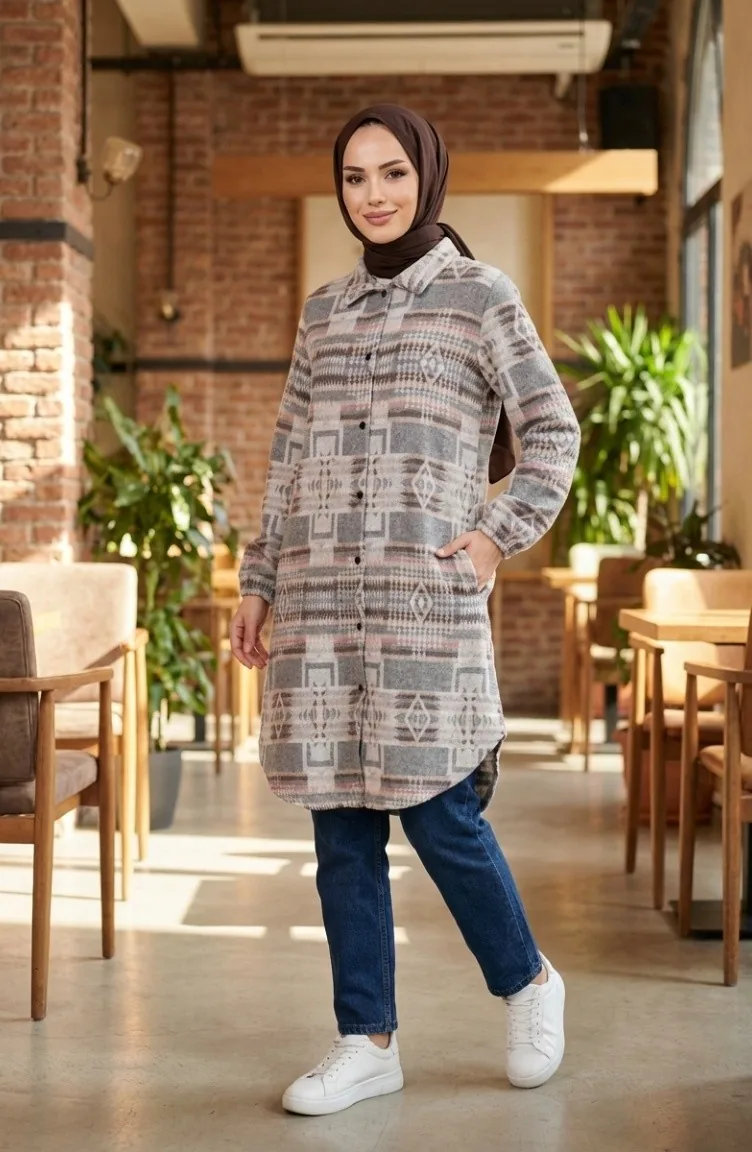 Bereiten Sie sich auf die kalte Jahreszeit vor mit unserer exklusiven Holzfäller-Tunika im Ethno-Stil. Diese Tunika vereint traditionelle Muster mit einem modernen, bescheidenen Schnitt, der speziell für modebewusste Frauen entwickelt wurde. Das hochwertige Polyestergewebe sorgt dafür, dass Sie auch an frostigen Tagen warm bleiben, ohne auf Stil verzichten zu müssen.Material: Wärmeisolierendes Polyester-Holzfällergewebe, knitterarm.Design: Durchgehende Knopfleiste, markante Ethno-Prints, lockere Passform.Anlass: Ideal für den Alltag, das Büro oder winterliche Freizeitaktivitäten.Passform: Bequeme Standardpassform für maximalen Tragekomfort.Kombinieren Sie diese lange Tunika mit schmalen Hosen oder Leggings für ein harmonisches Gesamtbild. Die robuste Verarbeitung und die Liebe zum Detail machen dieses Kleidungsstück zu einem langlebigen Begleiter in Ihrer Modest Fashion Kollektion. Sefamerve steht für Qualität und modische Vielfalt im Bereich der islamischen Kleidung.