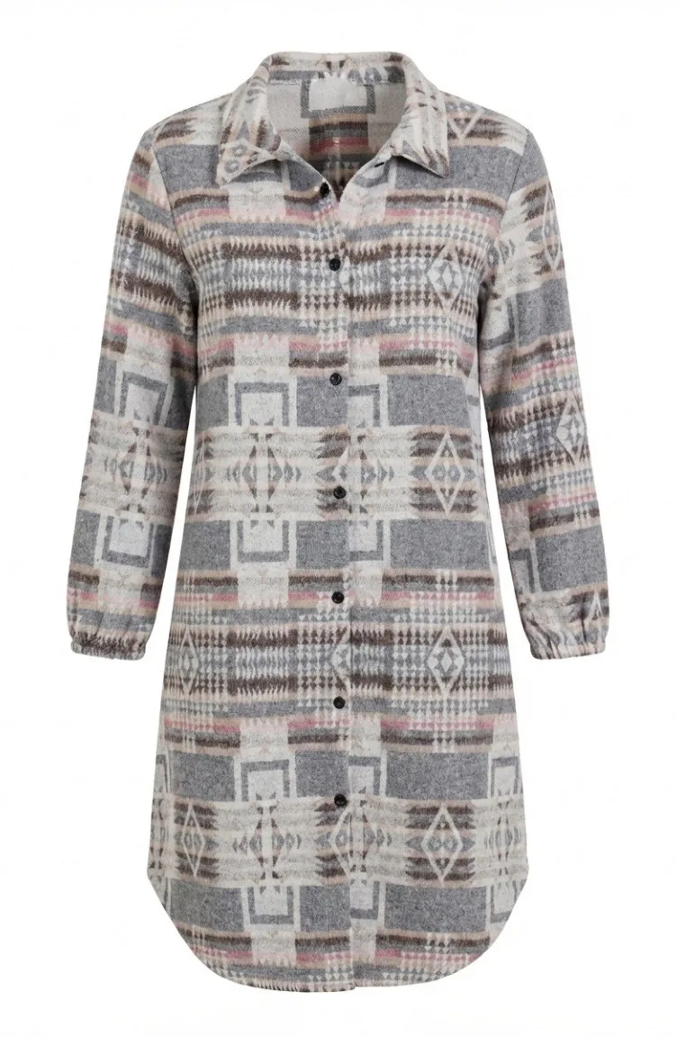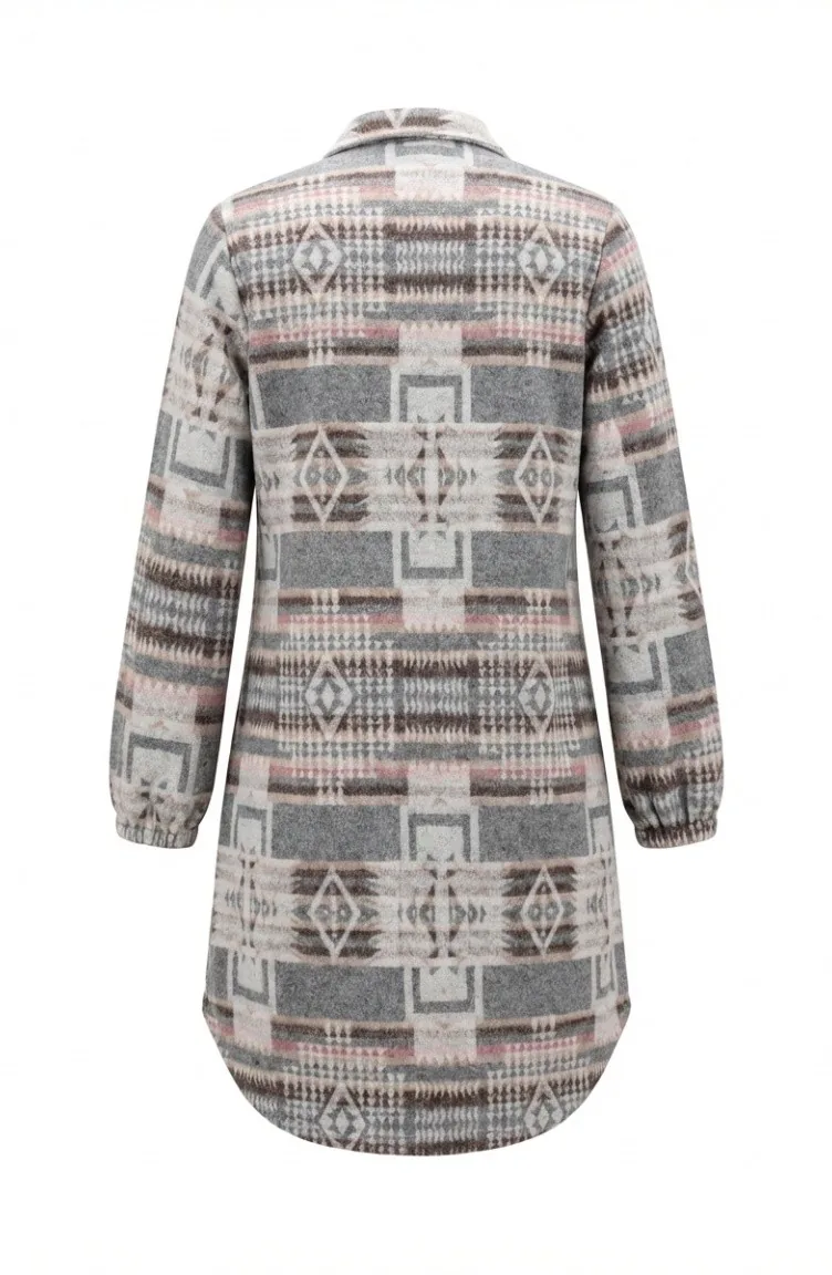 Wintertunika Im Holzfällerstil Mit Ethnischem Muster Und Knöpfen Modell 2504-02 Grau/Braun 2504-02