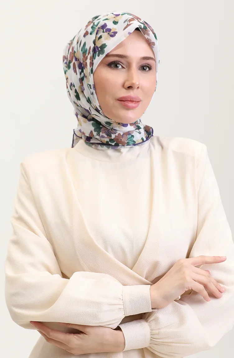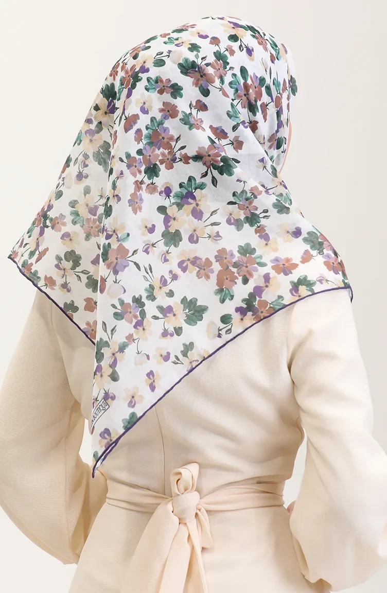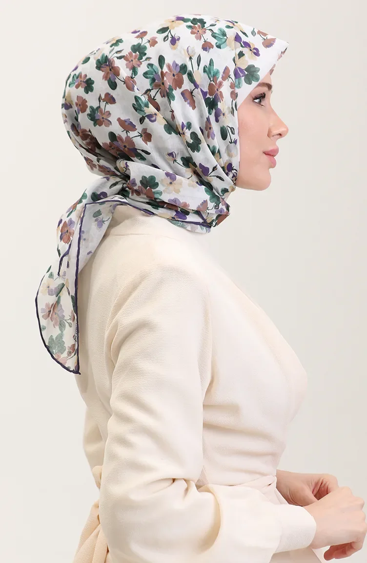 Desenli Pamuk Eşarp 2073-01 Yeşil Mor