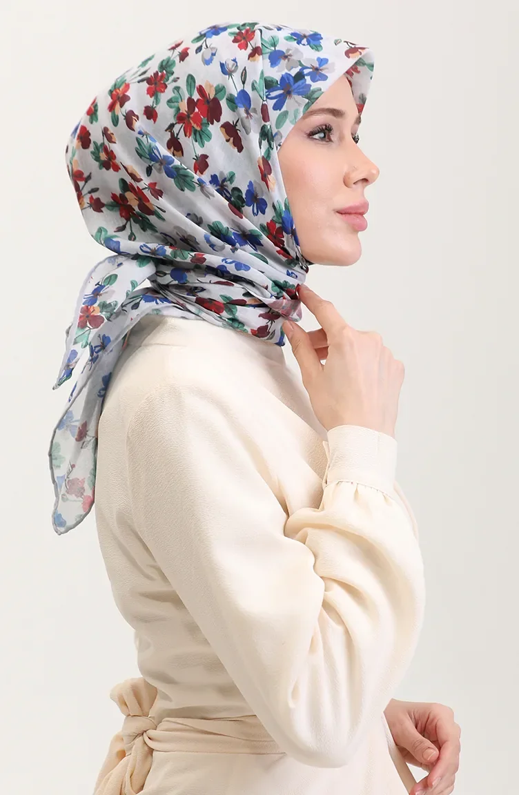 Desenli Pamuk Eşarp 2073-08 Saks Bordo