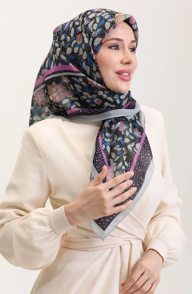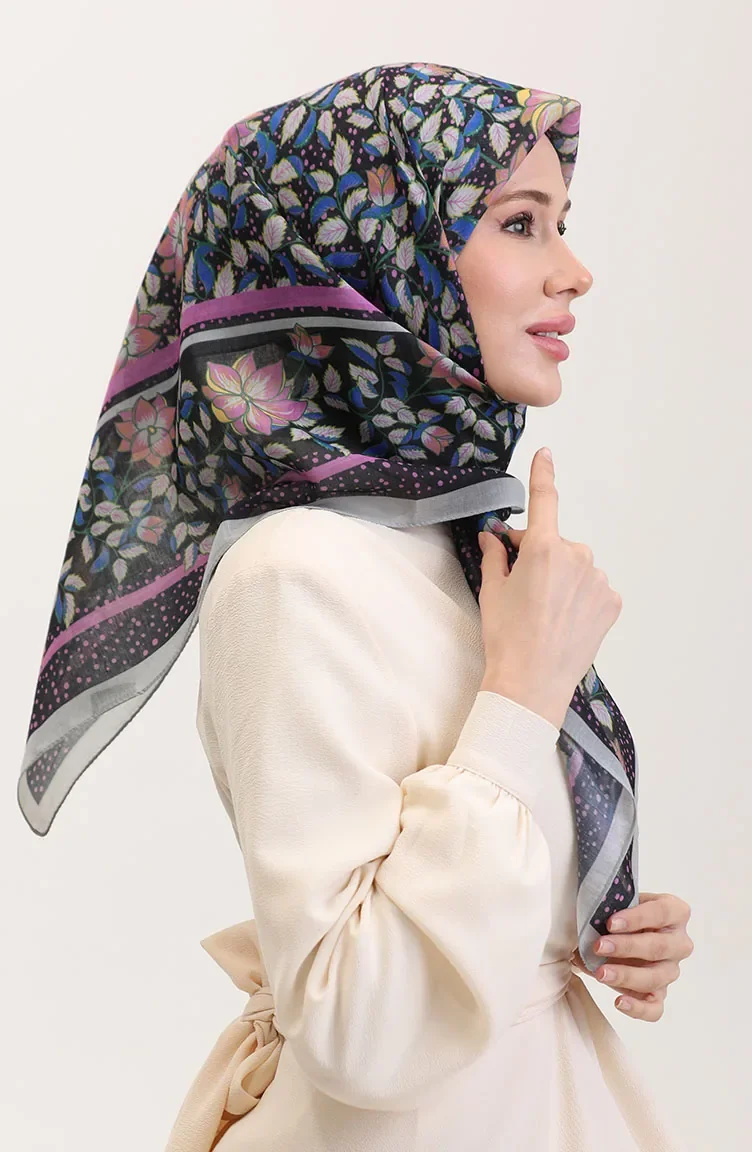 Desenli Pamuk Eşarp 2075-05 Lila Saks