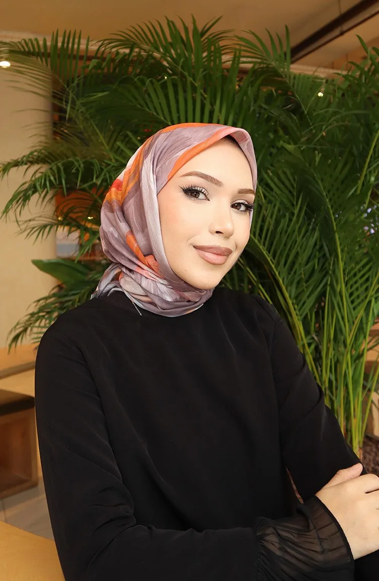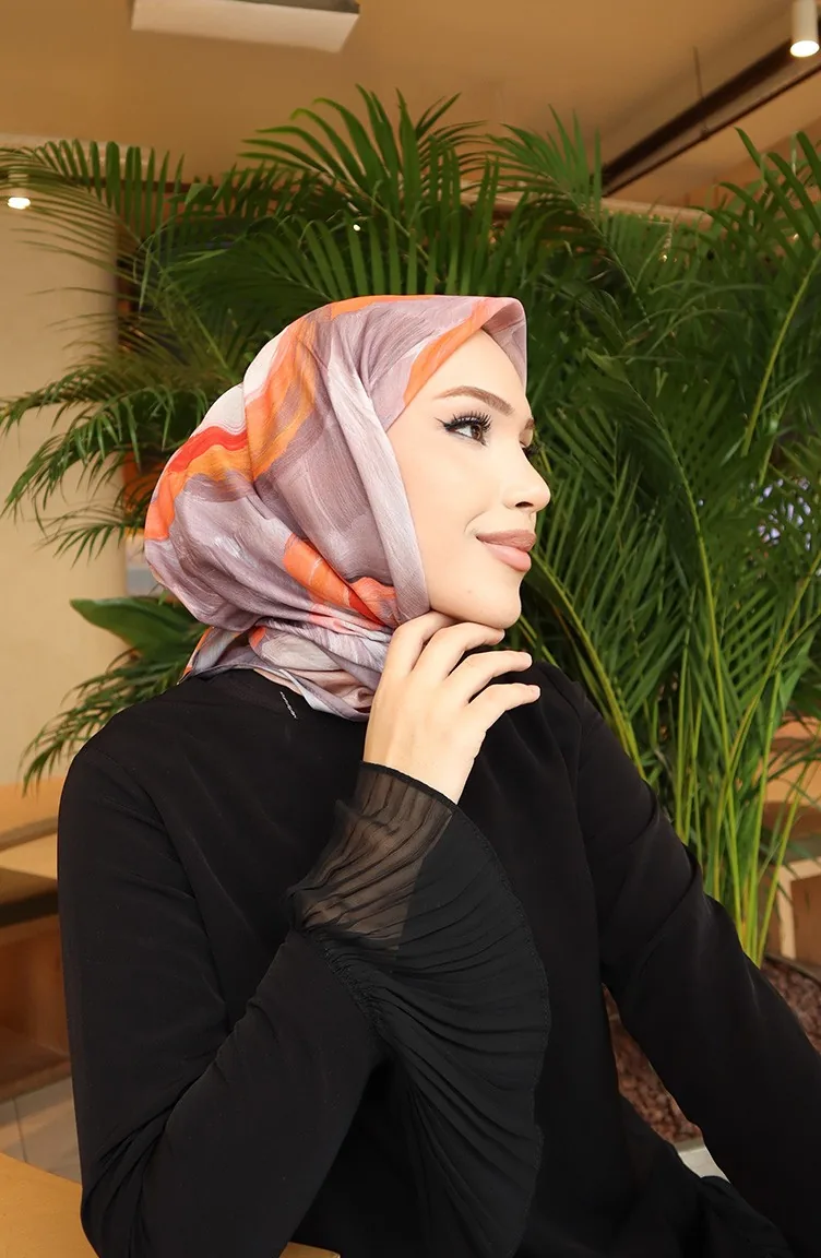 Desenli Pamuklu Koza Eşarp 70334-05 Vizon Oranj