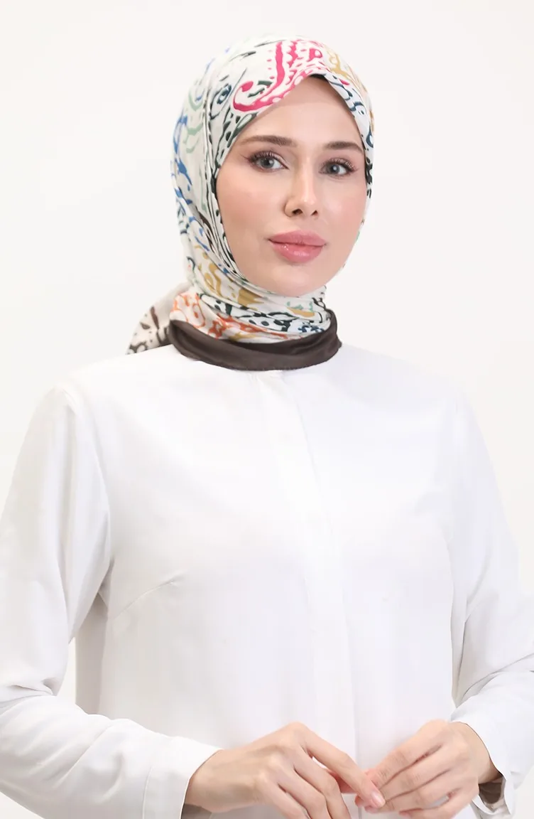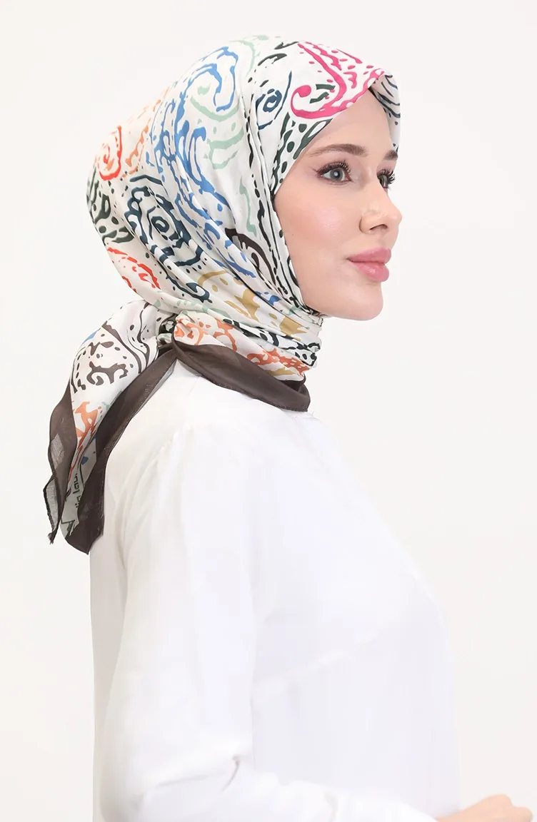 Desenli Soft Eşarp 70243-06 Acı Kahve Çağla Yeşili