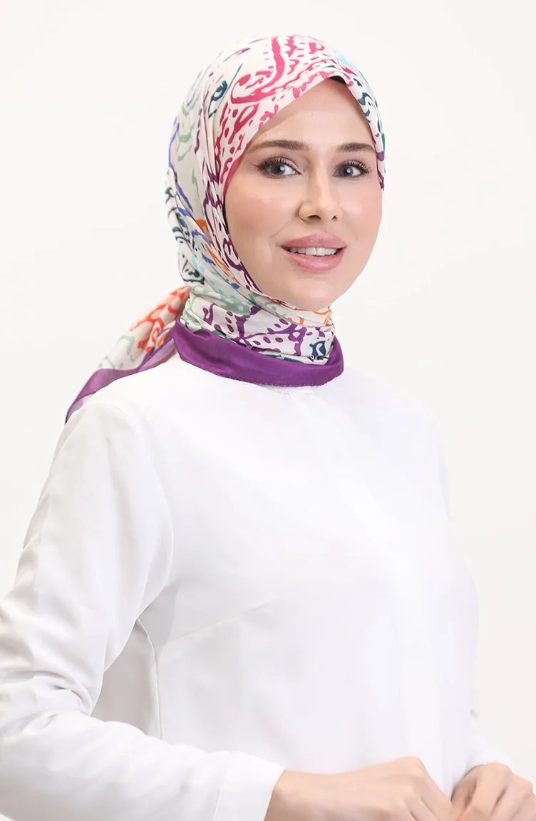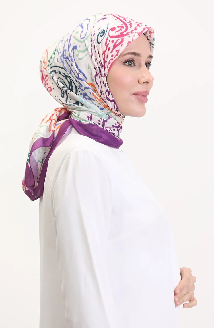 Desenli Soft Eşarp 70243-09 Eflatun Oranj