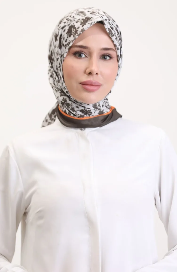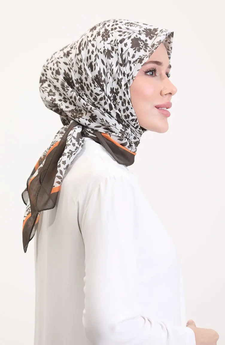 Desenli Soft Eşarp 70261-05 Kahverengi Oranj