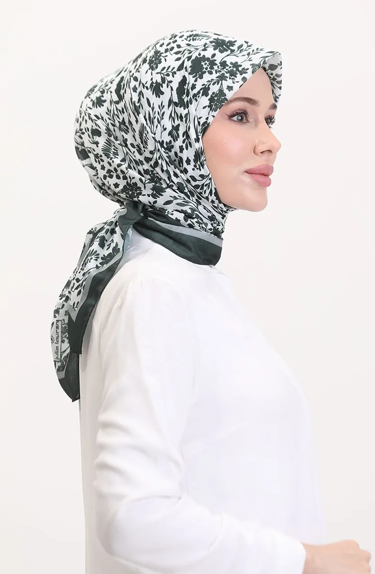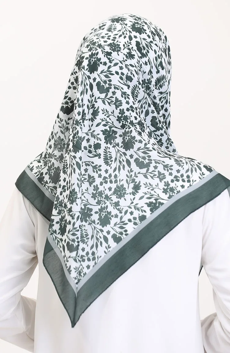 Desenli Soft Eşarp 70261-08 Koyu Yeşil Gri