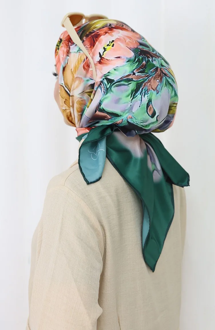 Dijital Rayon Eşarp 70298-06 Zümrüt Yeşili