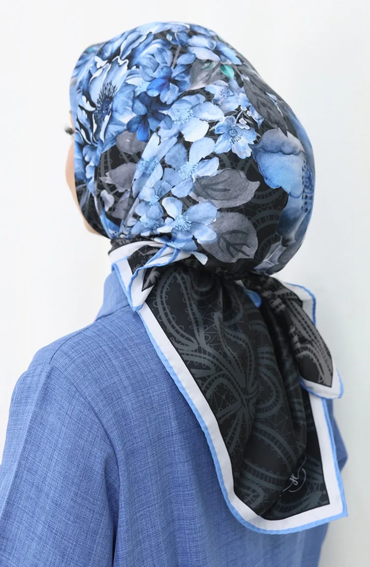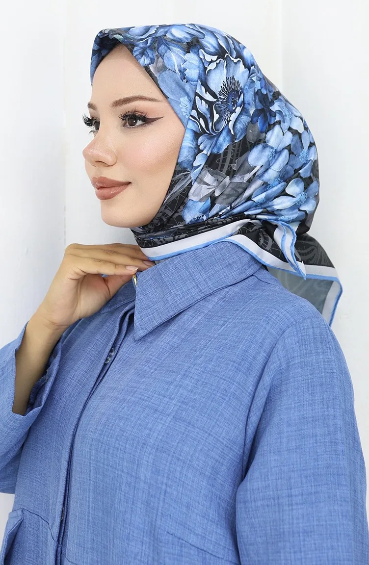 Dijital Rayon Eşarp 70299-10 Antrasit Mavi