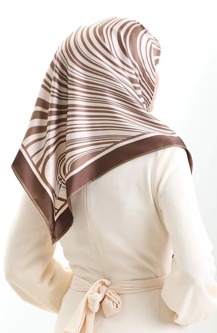 Dijital Rayon Eşarp 70301-14 Kahverengi Bej