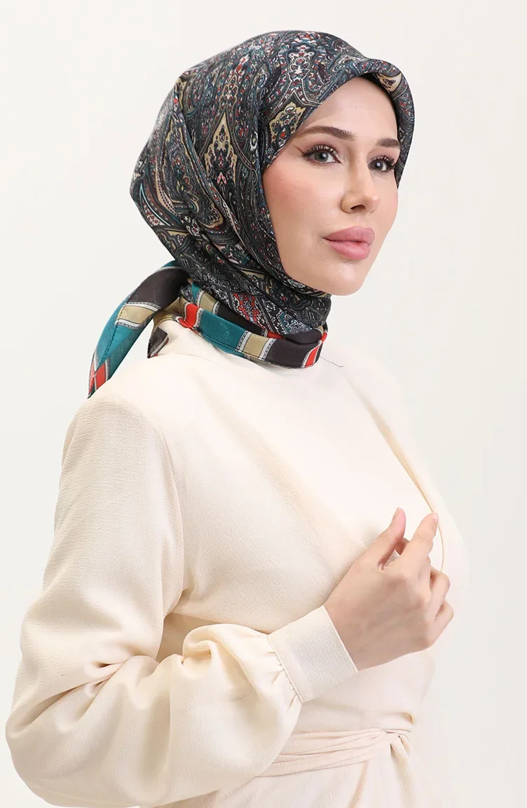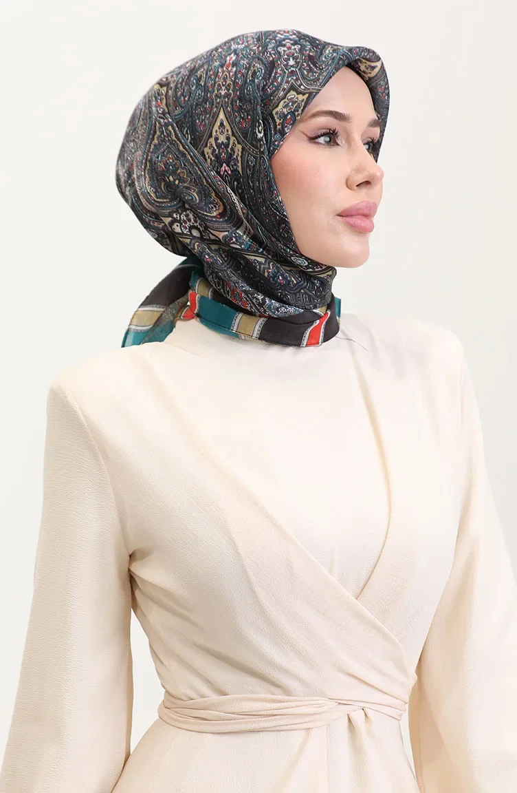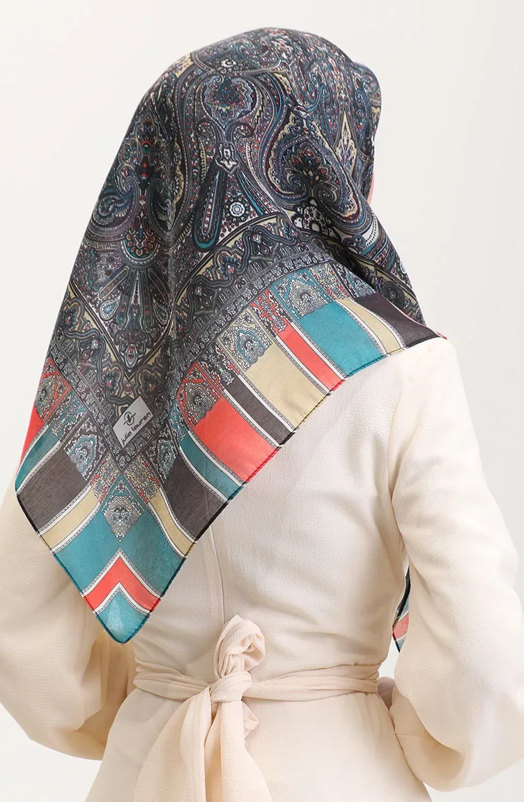 Etnik Kehribar Eşarp 70276-08 Petrol