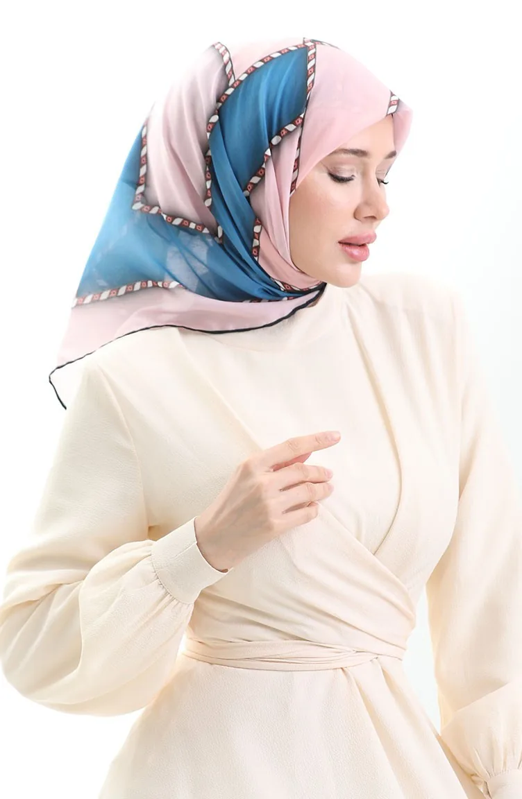 Geometrik Desenli Eşarp 70293-07 Pudra İndigo