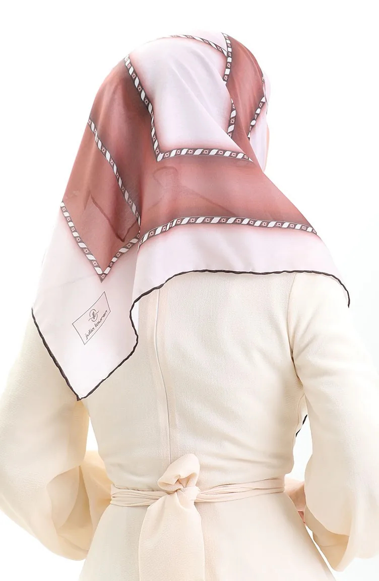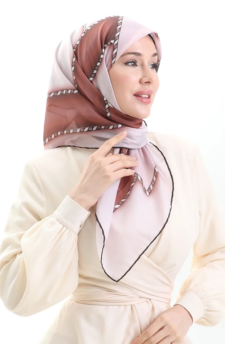 Geometrik Desenli Eşarp 70293-08 Pudra Kahverengi