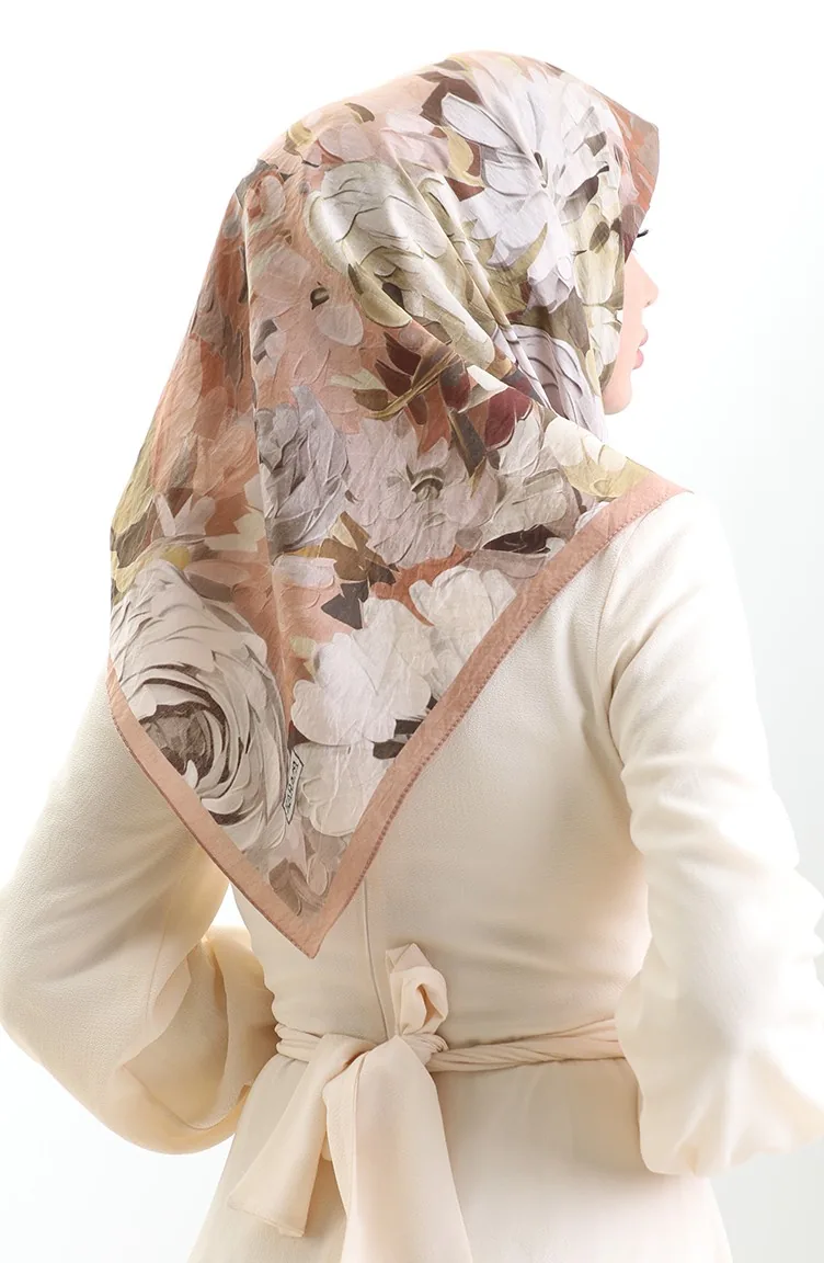 Karaca Çiçek Desenli Doğal Elyaf Eşarp 82017-01 Somon Yeşil
