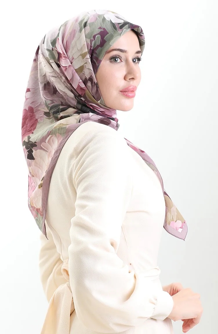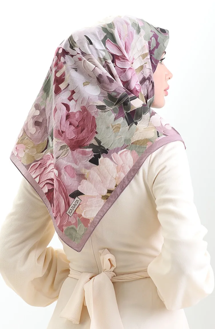 Karaca Çiçek Desenli Doğal Elyaf Eşarp 82017-02 Pudra Yeşil