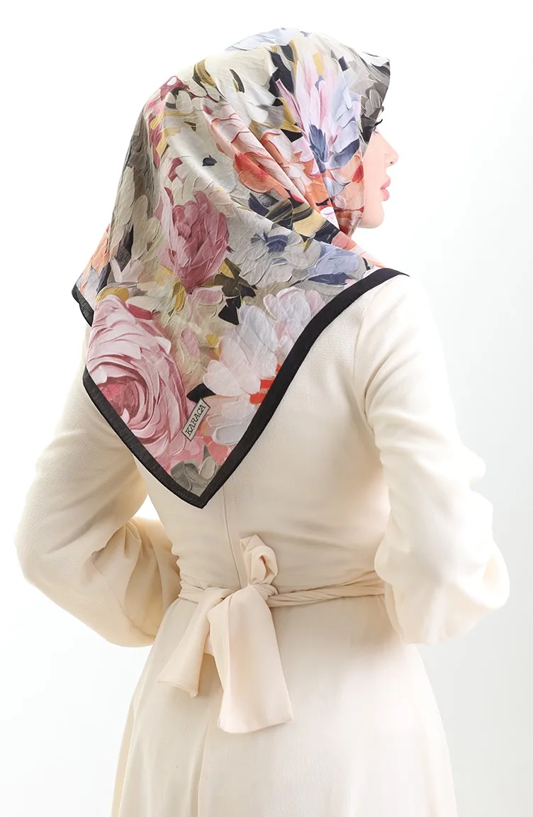 Karaca Çiçek Desenli Doğal Elyaf Eşarp 82017-12 Siyah Gül Kurusu