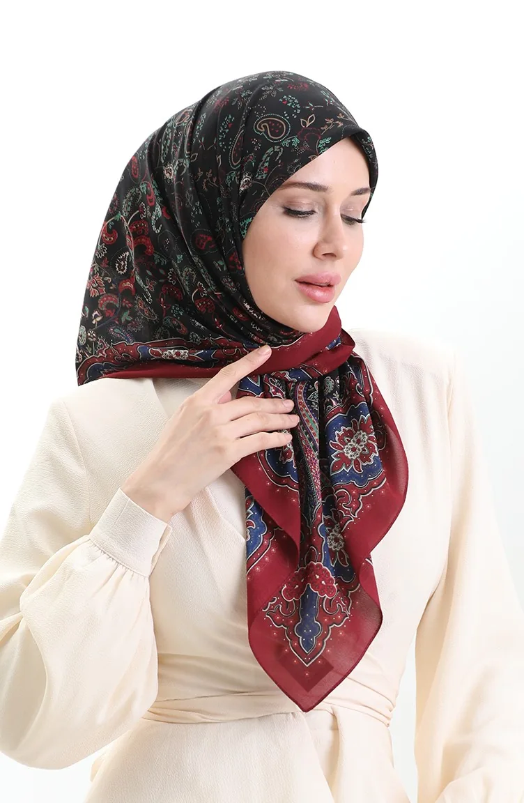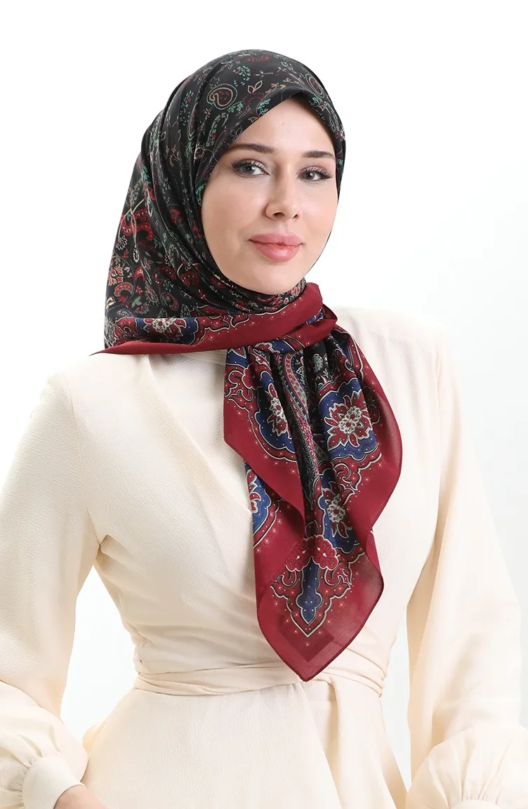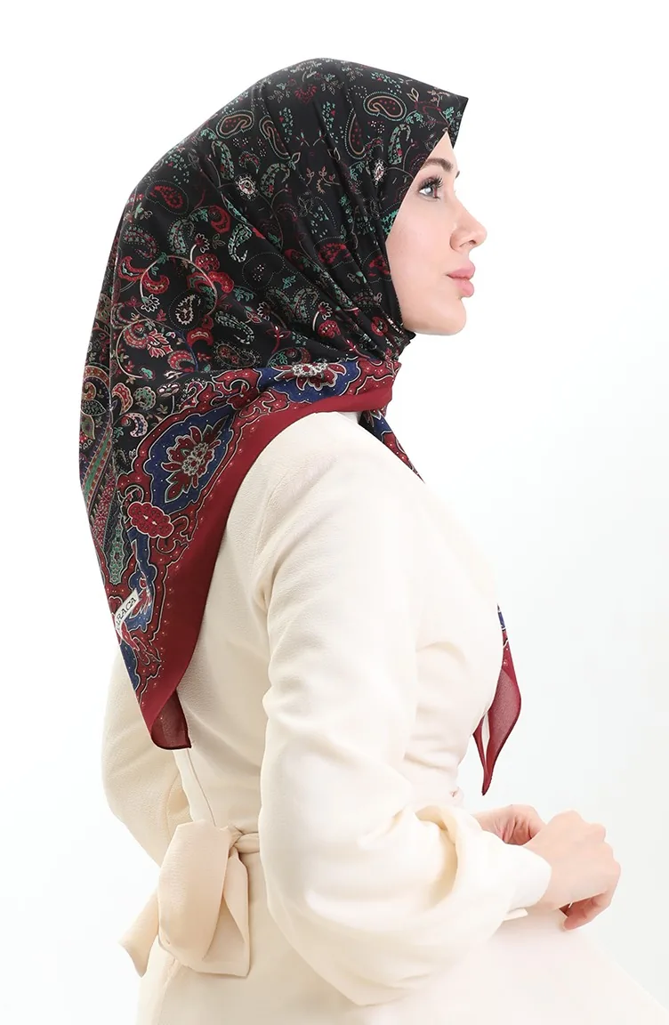 Karaca Desenli Cupra Eşarp 82015-02 Bordo Lacivert