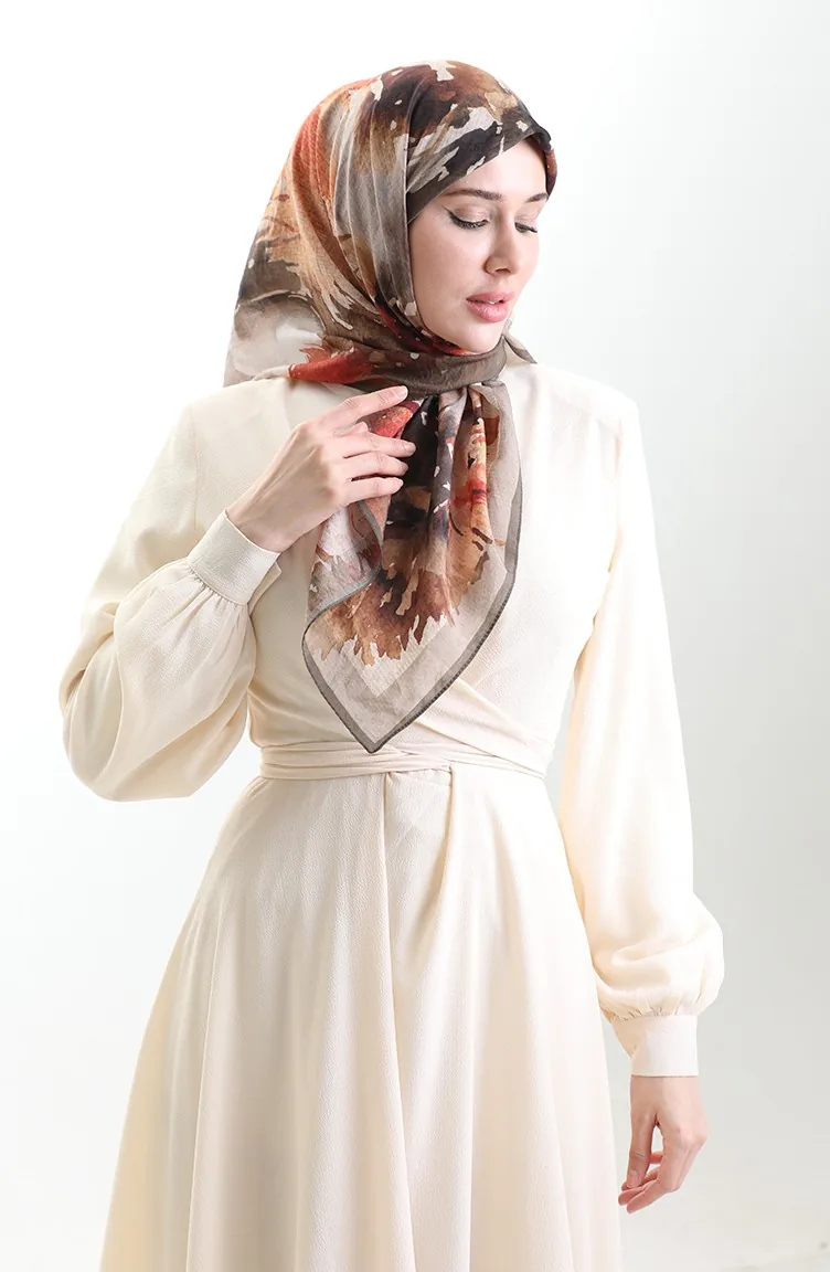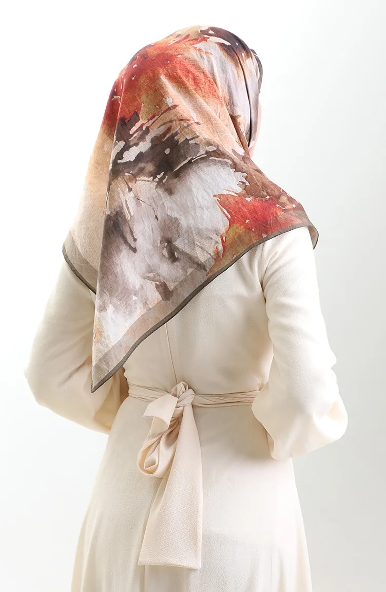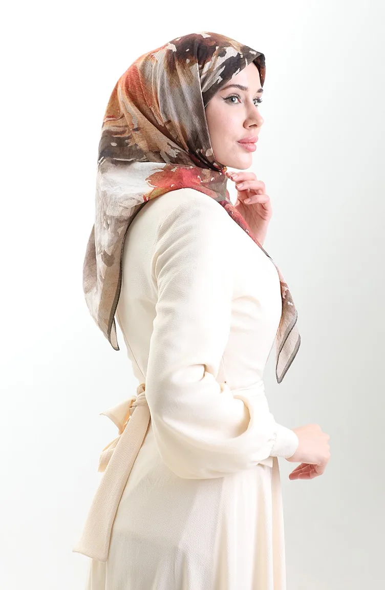 Karaca Desenli Doğal Elyaf Eşarp 82016-09 Yeşil Kahverengi