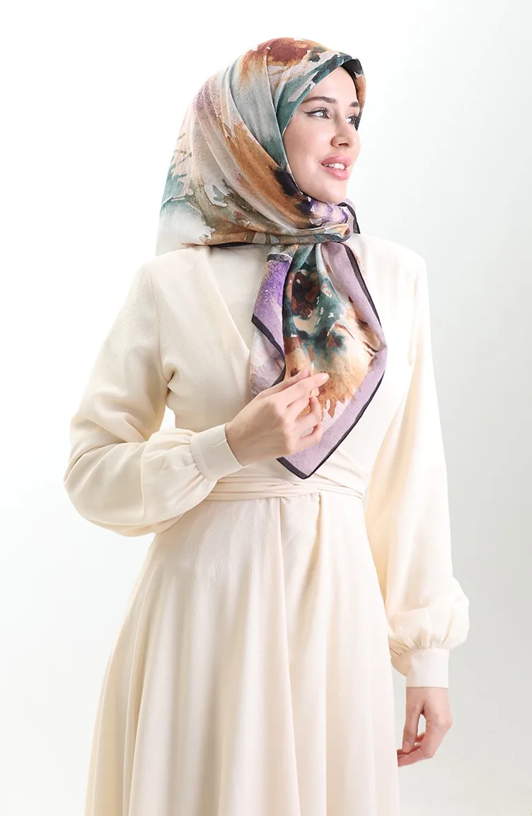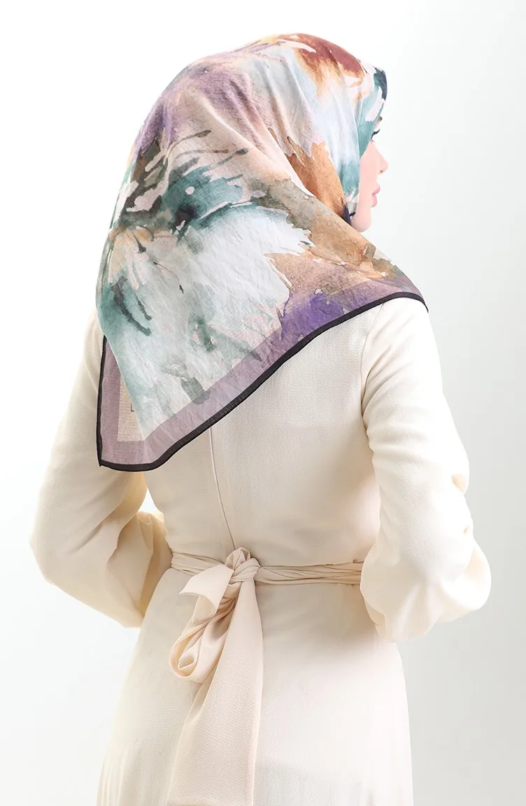 Karaca Desenli Doğal Elyaf Eşarp 82016-10 Mor Lila